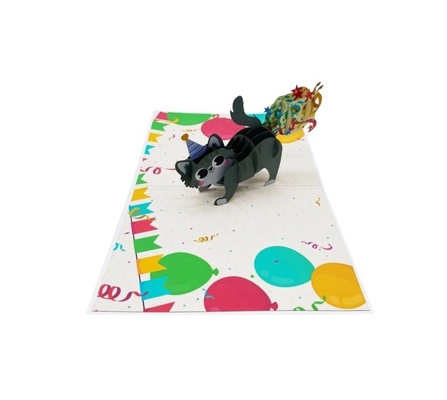 • Thiết kế 3D độc đáo: Mở ra là chú mèo đội mũ sinh nhật dễ thương, sống động, vui nhộn.