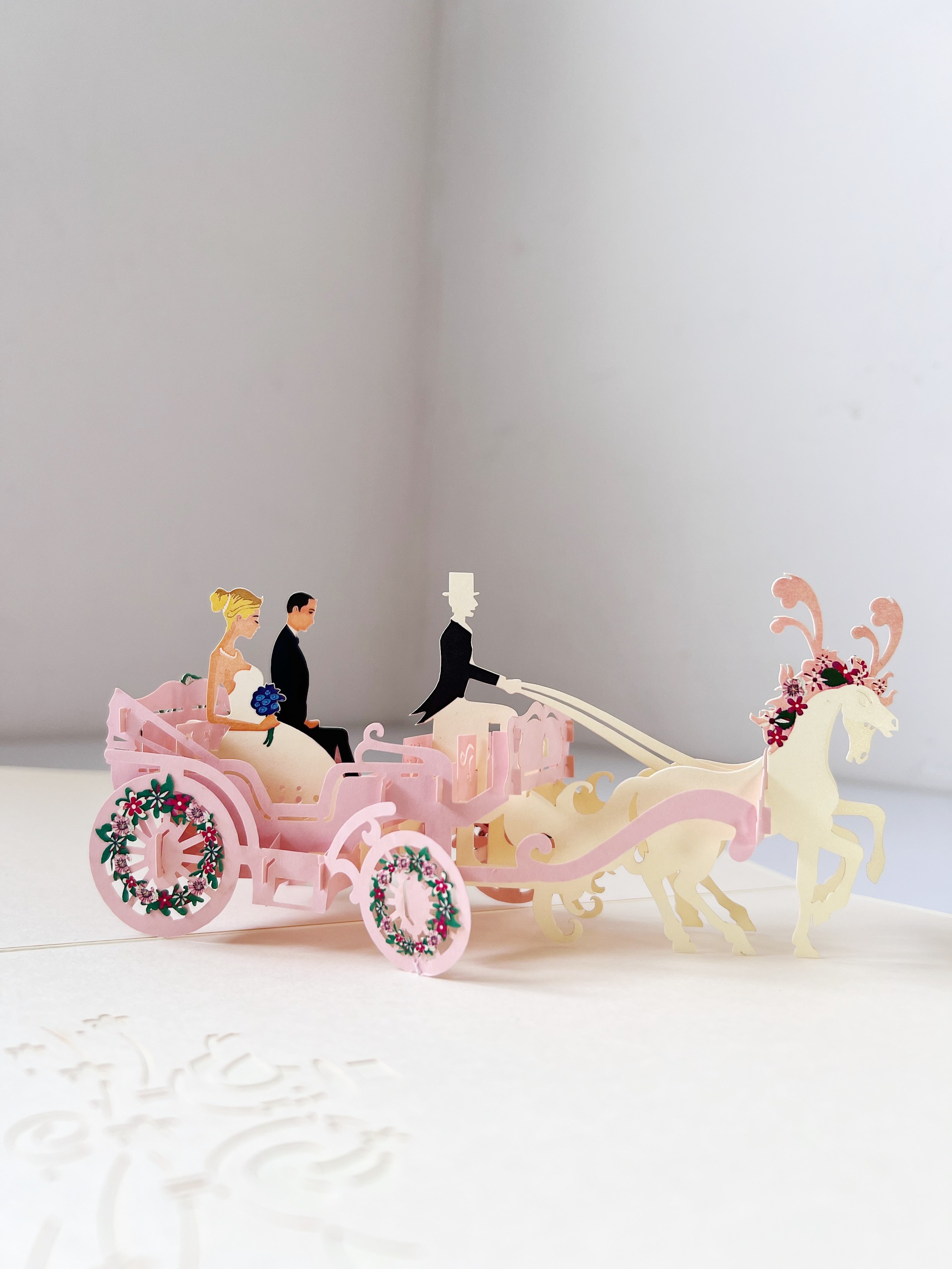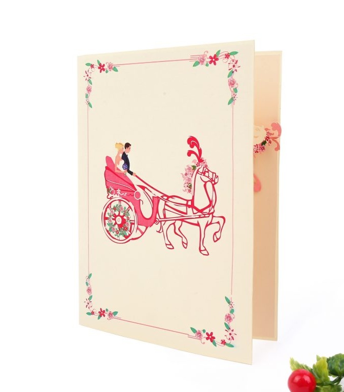 ✨Thiệp 3D Pop Up Xe Ngựa Cưới – Thiệp Chúc Mừng Đám Cưới, Thiệp Wedding Sang Trọng, Độc Đáo, W04