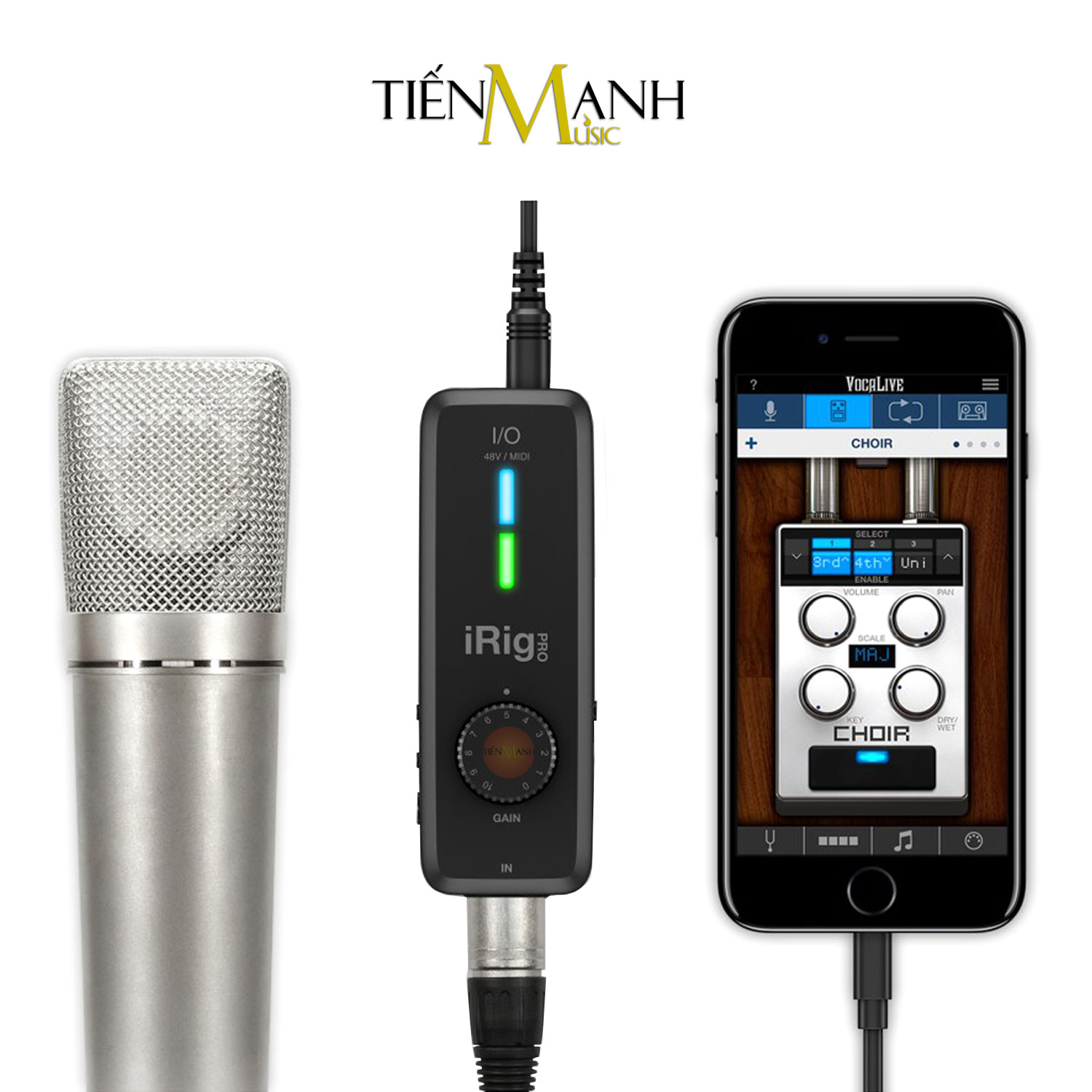 - iRig Pro I/O là thế hệ tiếp nối iRig Pro - giao diện điện thoại đầu tiên kết nối toàn bộ thiết bị âm thanh của bạn với Điện Thoại, Mac, PC hoặc Android để chơi và thu âm trong quá trình đó. Đó là âm thanh đủ tố chất có kích cỡ bỏ túi và giao diện MIDI cho bạn âm thanh chất lượng phòng thu 24-bit/96kHz ở mọi nơi bạn tới cùng một số đặc tính cốt yếu được bổ sung khi thu âm di động.