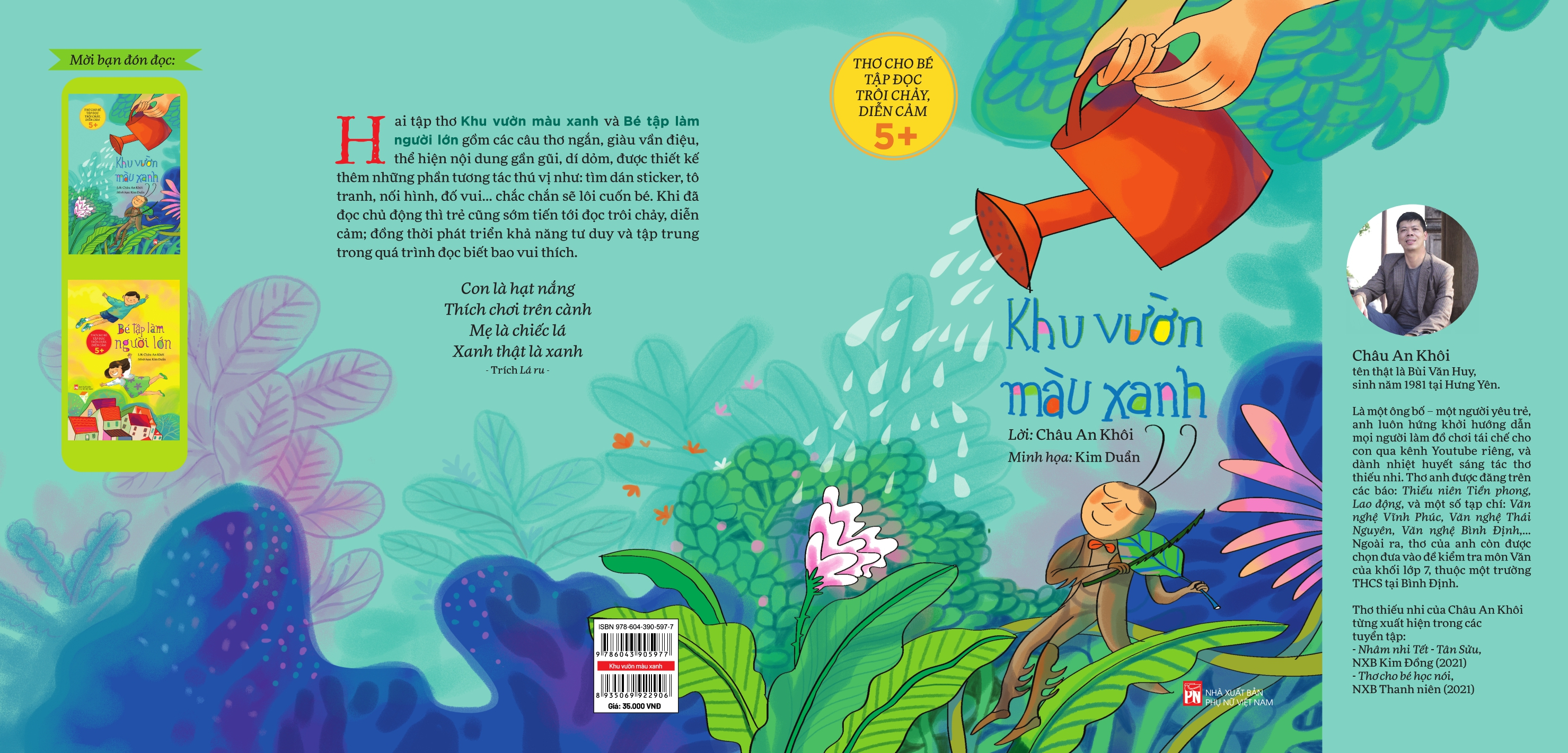 Những vần thơ nhẹ nhàng, đáng yêu trên nằm trong series “Thơ cho bé tập đọc trôi chảy, diễn cảm” gồm 2 cuốn Khu vườn màu xanh và Bé tập làm người lớn của tác giả Châu An Khôi – một kiến trúc sư và cũng là bố của 3 bạn nhỏ.