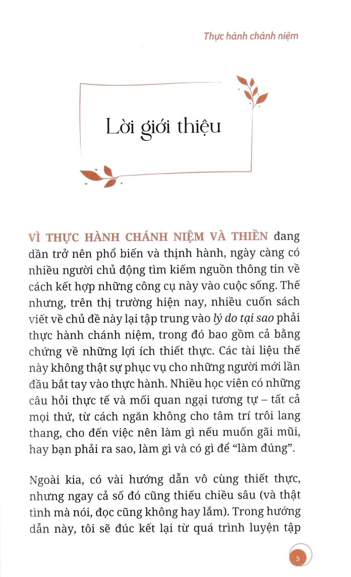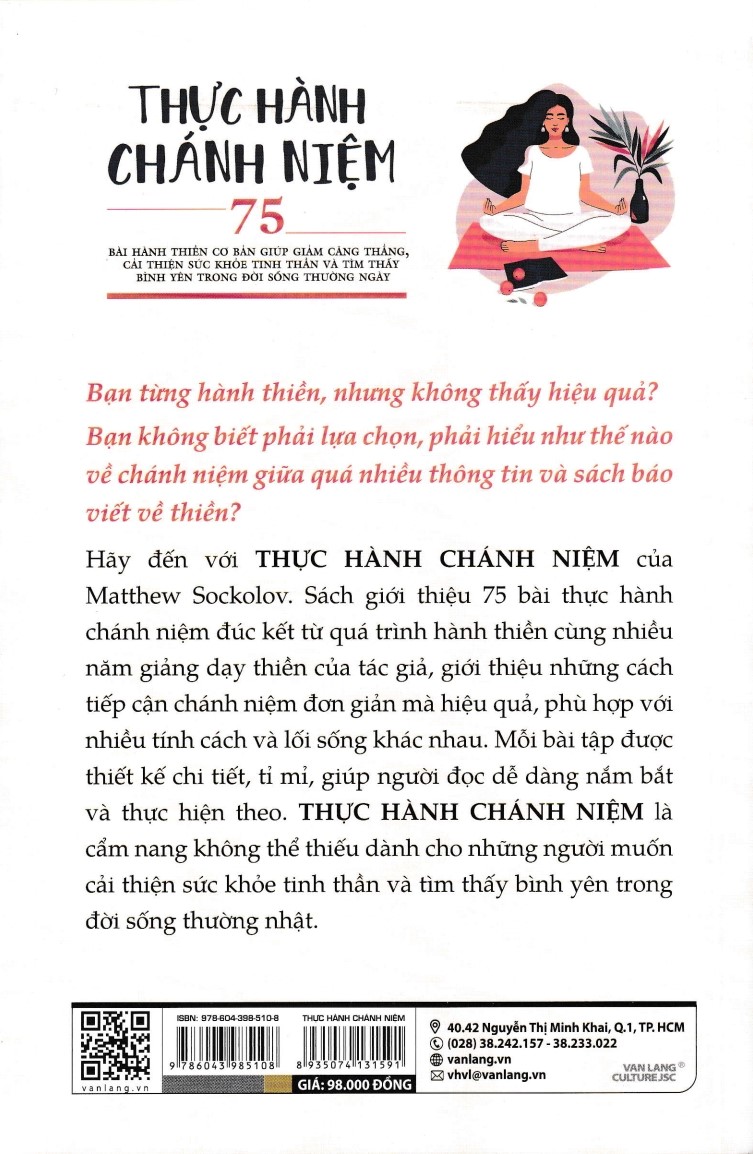 Bạn từng hành thiền, nhưng không thấy hiệu quả? Bạn không biết phải lựa chọn, phải hiểu như thế nào về chánh niệm giữa quá nhiều thông tin và sách bảo viết về thiền? Hãy đến với THỰC HÀNH CHÁNH NIỆM của Matthew Sockolov. Sách giới thiệu 75 bài thực hành chánh niệm đúc kết từ quá trình hành thiền cùng nhiều năm giảng dạy thiền của tác giả, giới thiệu những cách tiếp cận chánh niệm đơn giản mà hiệu quả, phù hợp với nhiều tính cách và lối sống khác nhau. Mỗi bài tập được thiết kế chi tiết, tỉ mỉ, giúp người đọc dễ dàng nắm bắt và thực hiện theo. THỰC HÀNH CHÁNH NIỆM là câm nang không thể thiếu dành cho những người muốn cải thiện sức khỏe tinh thần và tìm thấy bình yên trong đời sống thường nhật.