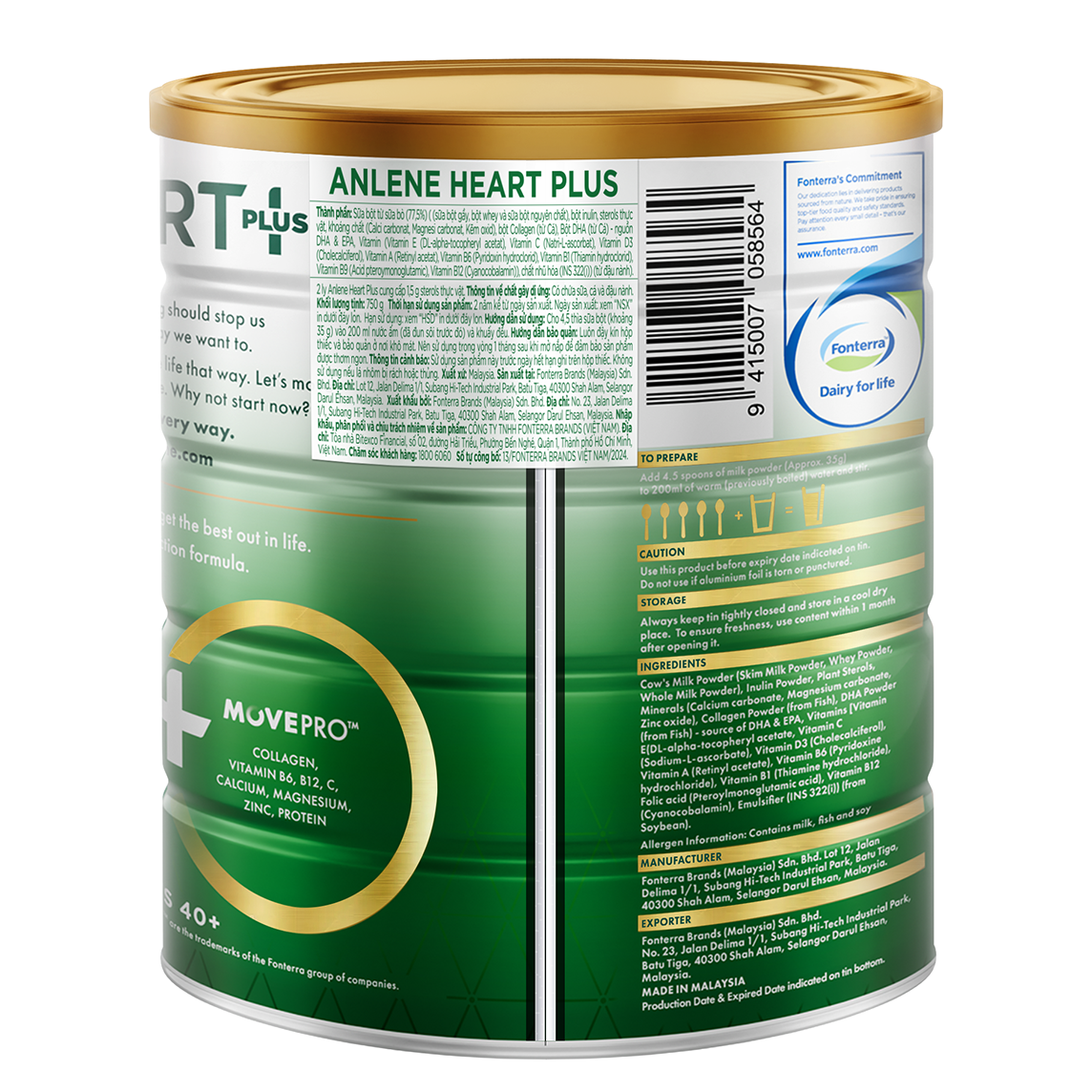 Mua tại TiktokĐặc điểm nổi bật: Anlene Heart Plus mới với công thức tốt cho tim mạch, chứa Plant Sterols giúp giảm 10% cholesterol xấu trong máu trong 3 tuần*, đồng thời chứa Omega 3, Vitamin B12, Kali, Folate và hệ dưỡng chất Move-Pro gồm Đạm, Can-xi, Magiê, kẽm, Collagen và Vitamin C tốt cho Cơ xương khớp. Vì vậy, sản phẩm này không chỉ hỗ trợ xương chắc khỏe mà còn giúp hỗ trợ tim mạch. Hướng dẫn sử dụng: