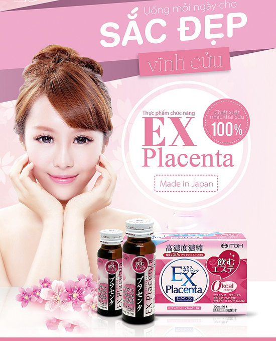 Nước uống bổ sung Collagen Itoh EX Placenta chứa chiết xuất từ nhau thai cừu nguyên chất, cung cấp các Protein, Vitamin và các Amino Axit thiết yếu đánh thức nguồn năng lượng cho làn da được trẻ hóa. Bên cạnh đó, nhau thai cừu còn có khả năng ức chế Enzyme xúc tác quá trình hình thành hắc sắc tố, hỗ trợ nuôi dưỡng làn da tươi sáng, đồng thời cải thiện tình trạng rối loạn sắc tố trên da như nám, tàn nhang khiến da sạm màu, hỗ trợ phục hồi những tế bào da hư tổn, thúc đẩy làm nhanh liền sẹo cho làn da mịn màng.