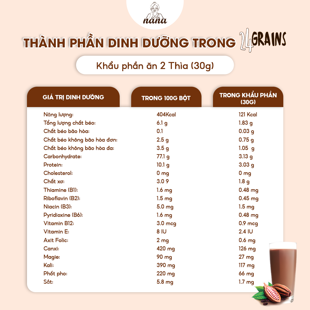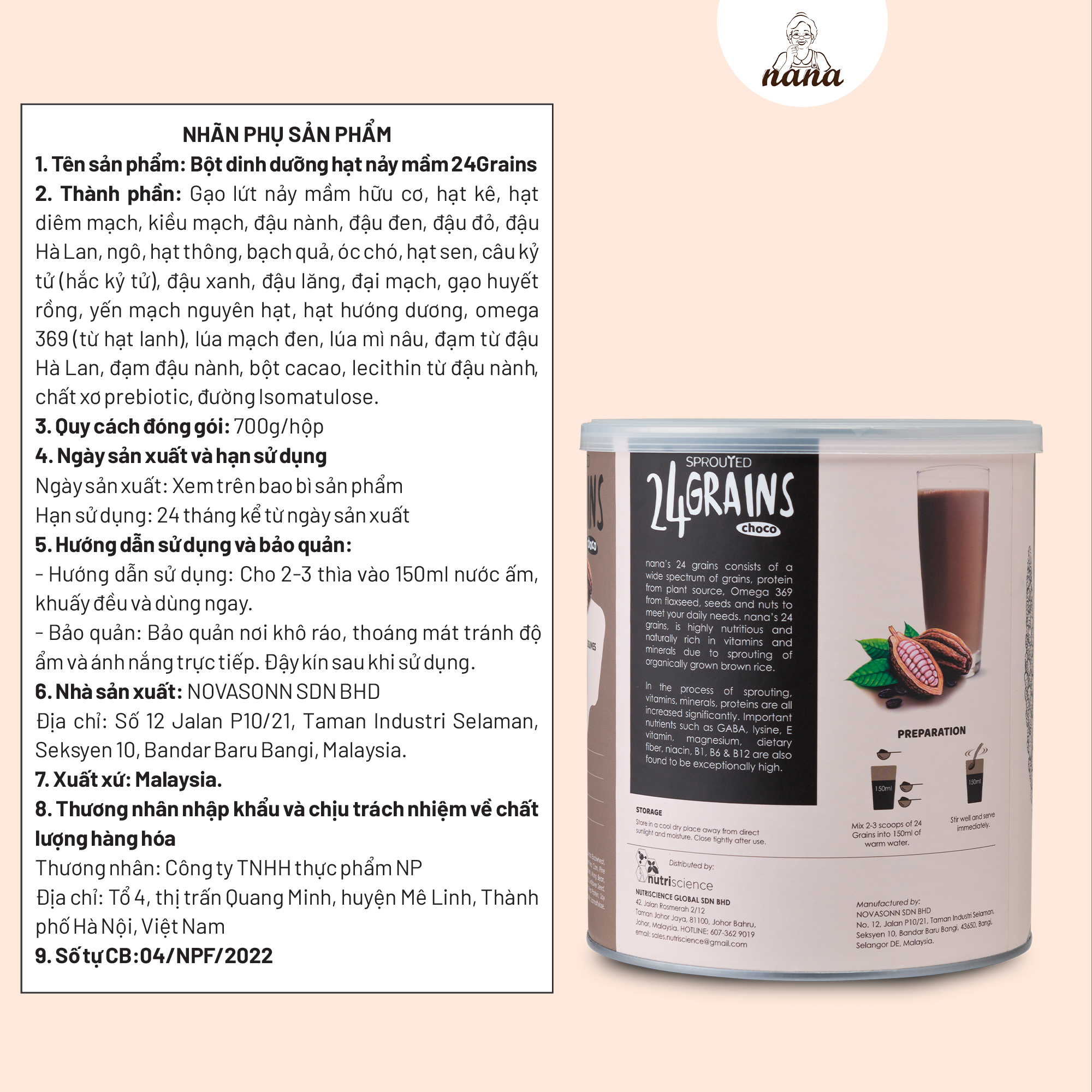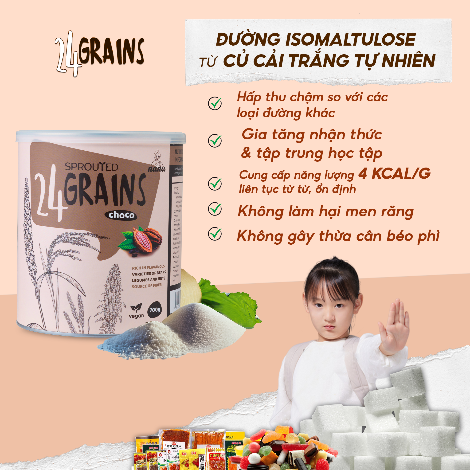 Sữa Hạt Gạo Lứt Hữu Cơ 24Grains 700g Vị Socola Nhập Khẩu Malaysia Cho Trẻ Từ 3 Tuổi & Người Lớn Bổ Sung Dinh Dưỡng Vegan - 24grains