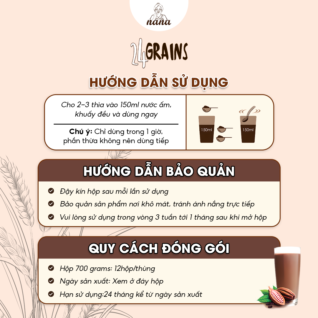 Sữa Hạt Gạo Lứt Hữu Cơ 24Grains 700g Vị Socola Nhập Khẩu Malaysia Cho Trẻ Từ 3 Tuổi & Người Lớn Bổ Sung Dinh Dưỡng Vegan - 24grains THÔNG TIN SẢN PHẨM: - Nhập