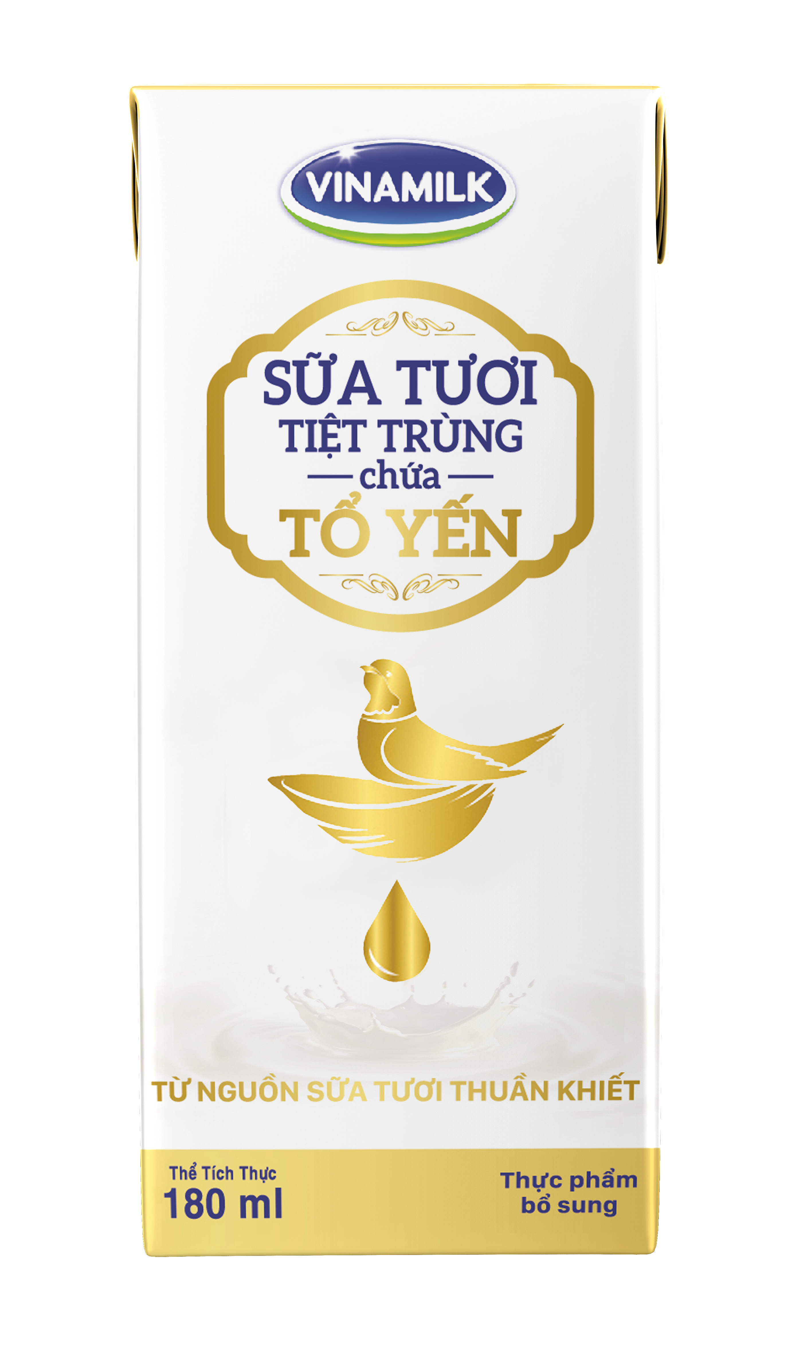 - Vitamin A, D3 & Selen hỗ trợ miễn dịch, tăng cường sức đề kháng. Đây là sản phẩm sữa tươi tiệt trùng có chứa tổ yến cực kỳ bổ dưỡng và thơm ngon. Lốc 4 hộp sữa tươi tiệt trùng chứa tổ yến Vinamilk 180ml là món quà cho sức khoẻ mà Vinamilk dành tặng cho khách hàng, có thể đem biếu, tặng vì bao bì cực sang trọng, giàu dinh dưỡng và thơm ngon