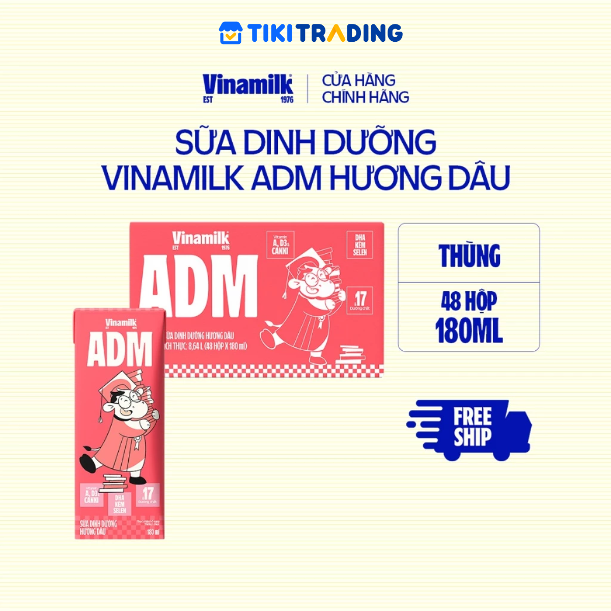Mua tại TiktokSữa dinh dưỡng Hương Dâu Vinamilk ADM Hộp 180ml