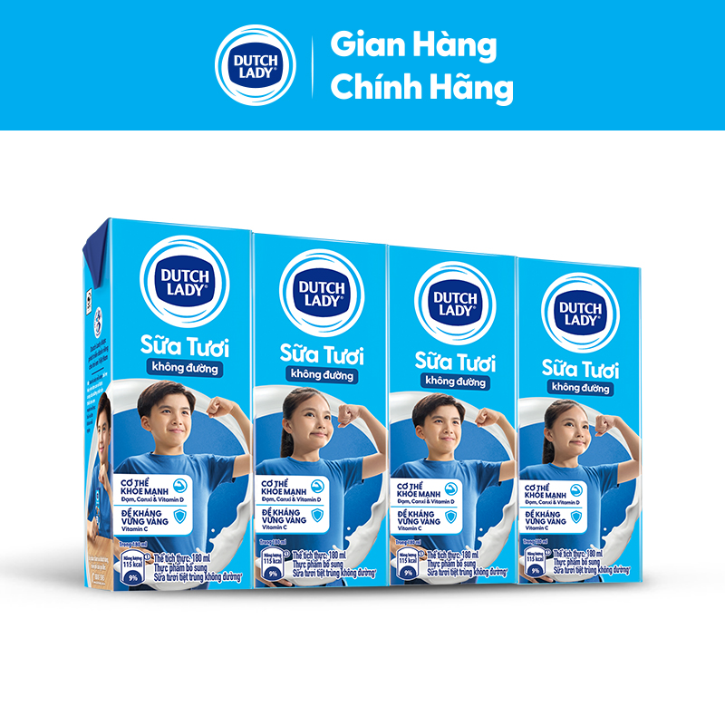 - Thùng 48 Bịch Sữa Tiệt Trùng Dutch Lady Cô Gái Hà Lan Không Đường 180ml - Sữa Bịch Tiệt Trùng Cô Gái Hà Lan bổ sung Can-xi, Phốt pho, Vitamin B2, B12 giúp