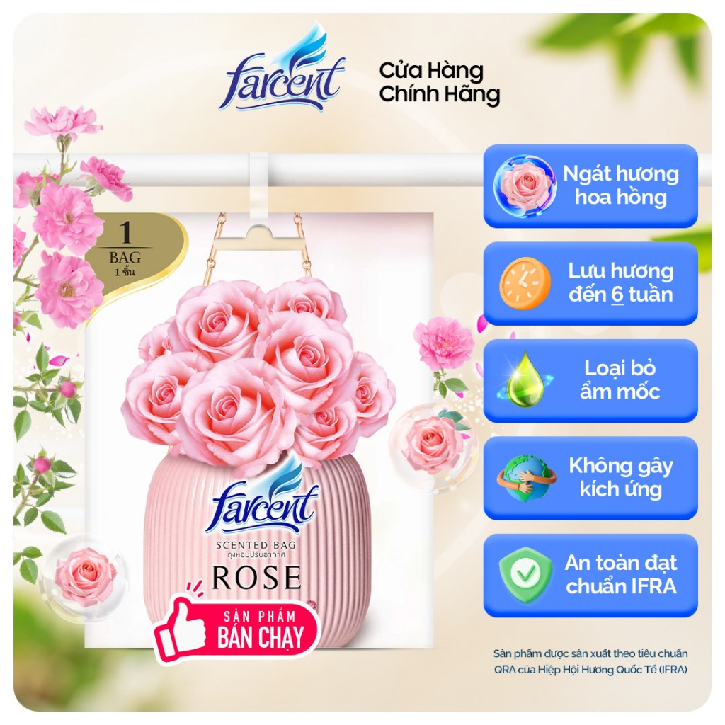 Mua tại TiktokThông tin sản Túi thơm để tủ quần áo khử mùi, chống ẩm mốc Farcent (Hương Ban Mai / Hoa Hồng / Hương Hoa Oải Hương) 10g chính hãng