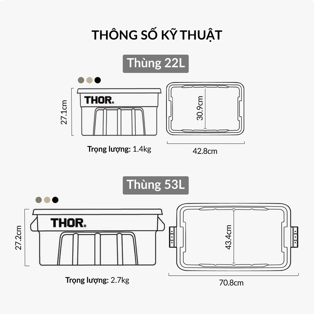 Chi tiết về sản phẩm : Thùng nhựa Thor hộp nhựa cao cấp không gian lưu trữ lớn thích hợp đi cắm trại, dã ngoại ngoài trời phân phối bởi Cobi Home