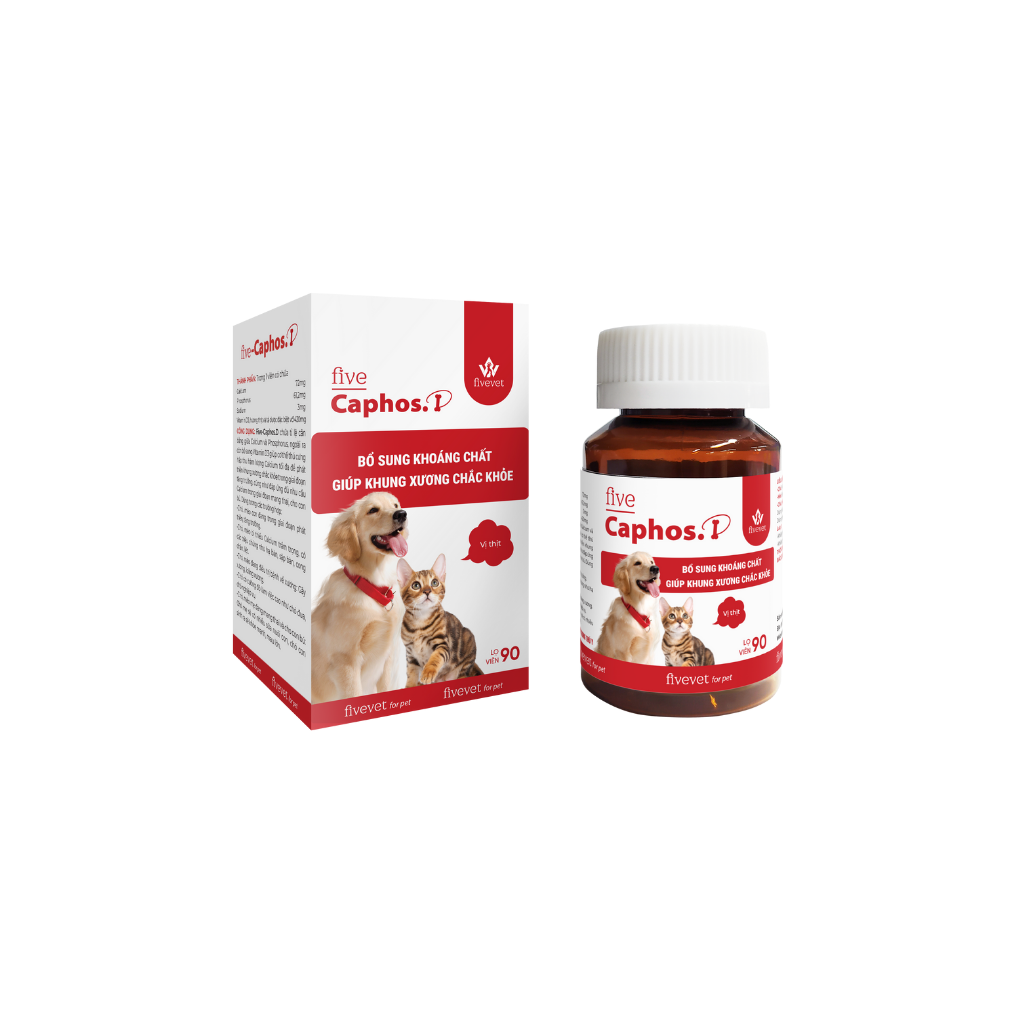 Thuốc Bổ Sung Canxi Cho Xương Five-Caphos.D Dành Cho Thú Cưng 90 Viên - Fivevet ️CÔNG DỤNG: Five-Caphos.D chứa tỉ lệ cân bằng giữa Calcium và Phosphorus, ngoài ra còn bổ sung Vitamin D3 giúp