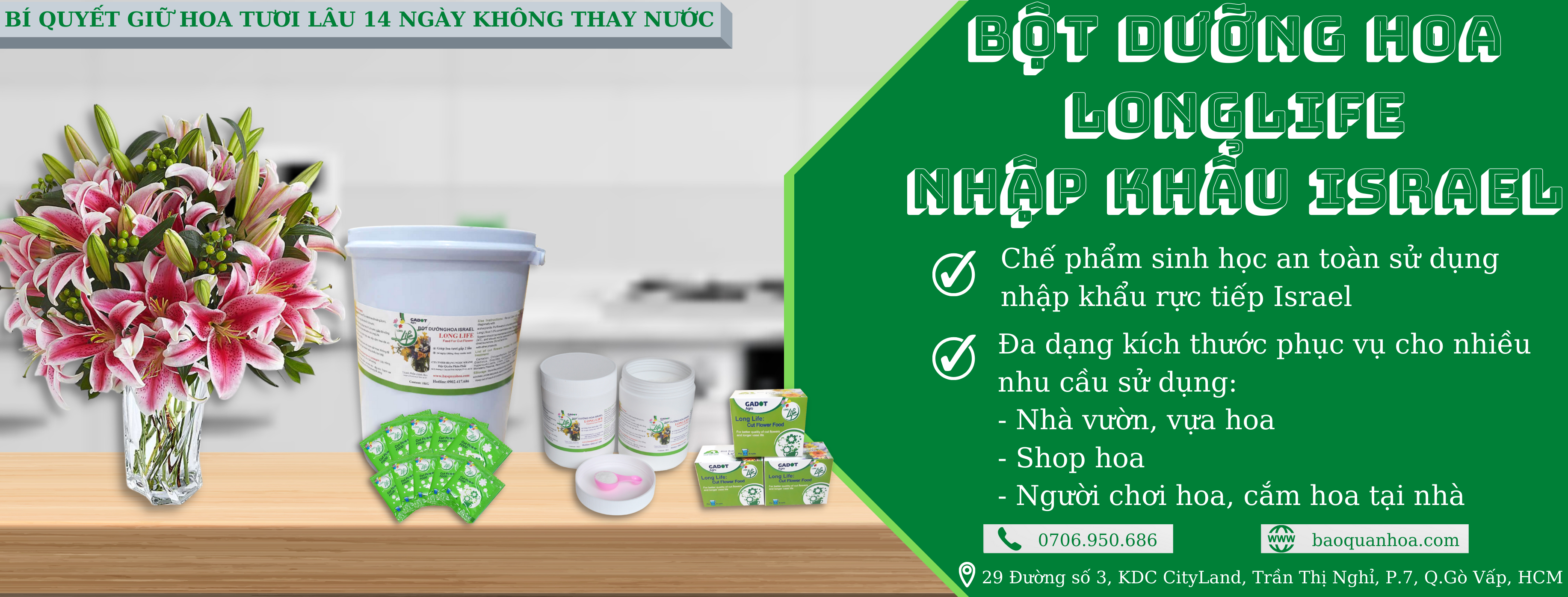 BỘT DƯỠNG HOA DÀNH RIÊNG CHO SHOP HOA Giúp bảo quản hoa tươi lâu gấp 2 LẦN và 14 ngày không THAY nước - Longlife SG của Israel Nhập khẩu từ Israel: Công nghệ