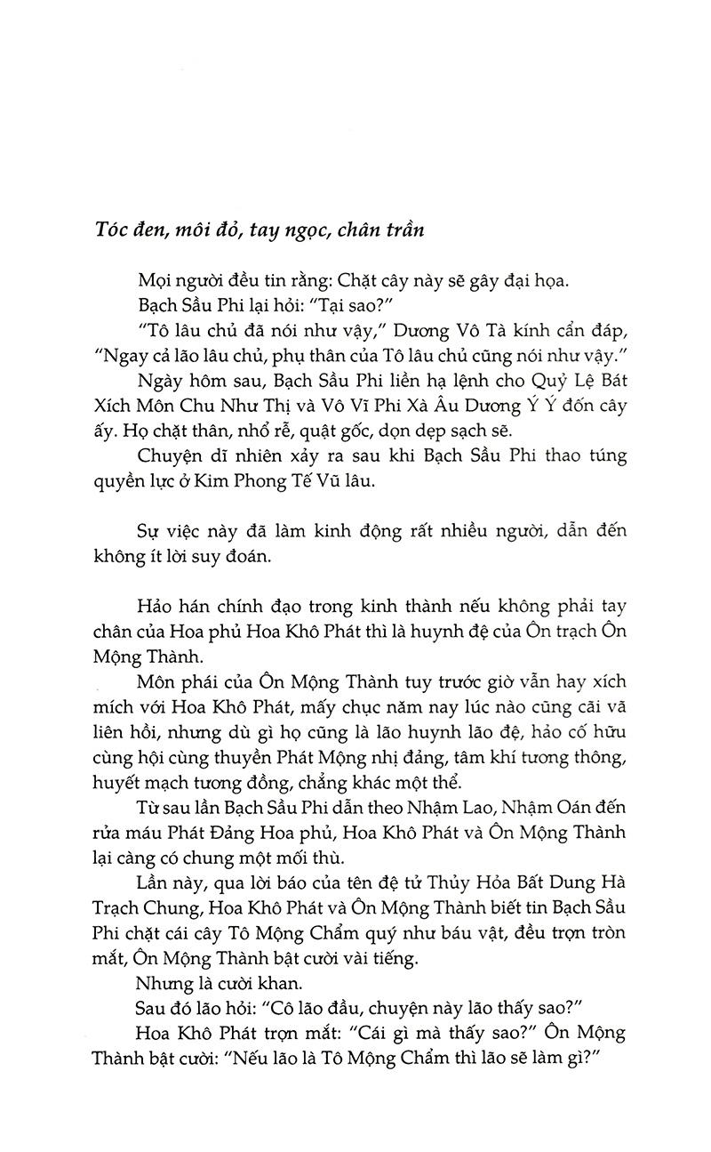 Kể từ đây, ba thế lực võ lâm hàng đầu kinh thành, Tượng Tị tháp, Phong Vũ lâu và Lục Phân Bán đường lại dấy lên một phen tranh đấu trời long đất lở, cuốn theo hàng loạt nhân vật võ lâm và triều đình. Một đòn thương xuất ra, là kinh diễm hay là bi ai? Một mũi tên bay tới, là thương tổn da thịt hay thương tổn cõi lòng? Tình huynh đệ giữa ba người Bạch, Tô, Vương rồi sẽ ra sao?