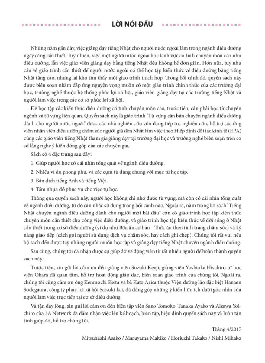 Tiếng Nhật chuyên ngành điều dưỡng dành cho người mới bắt đầu - Kiến thức cơ bản ------------ Nằm trong bộ sách “Tiếng Nhật chuyên ngành điều dưỡng”, bao gồm “Từ vựng cơ bản”,