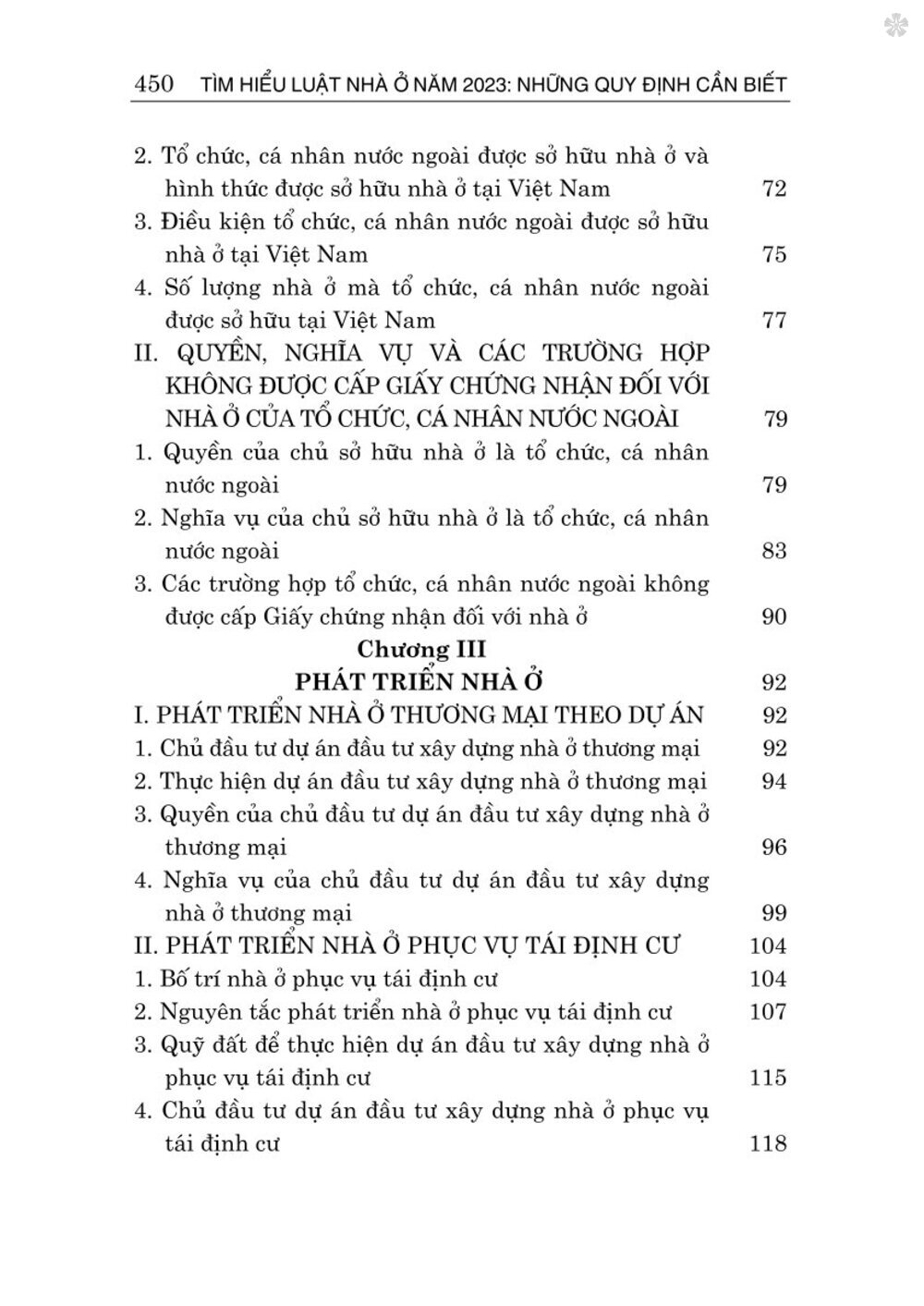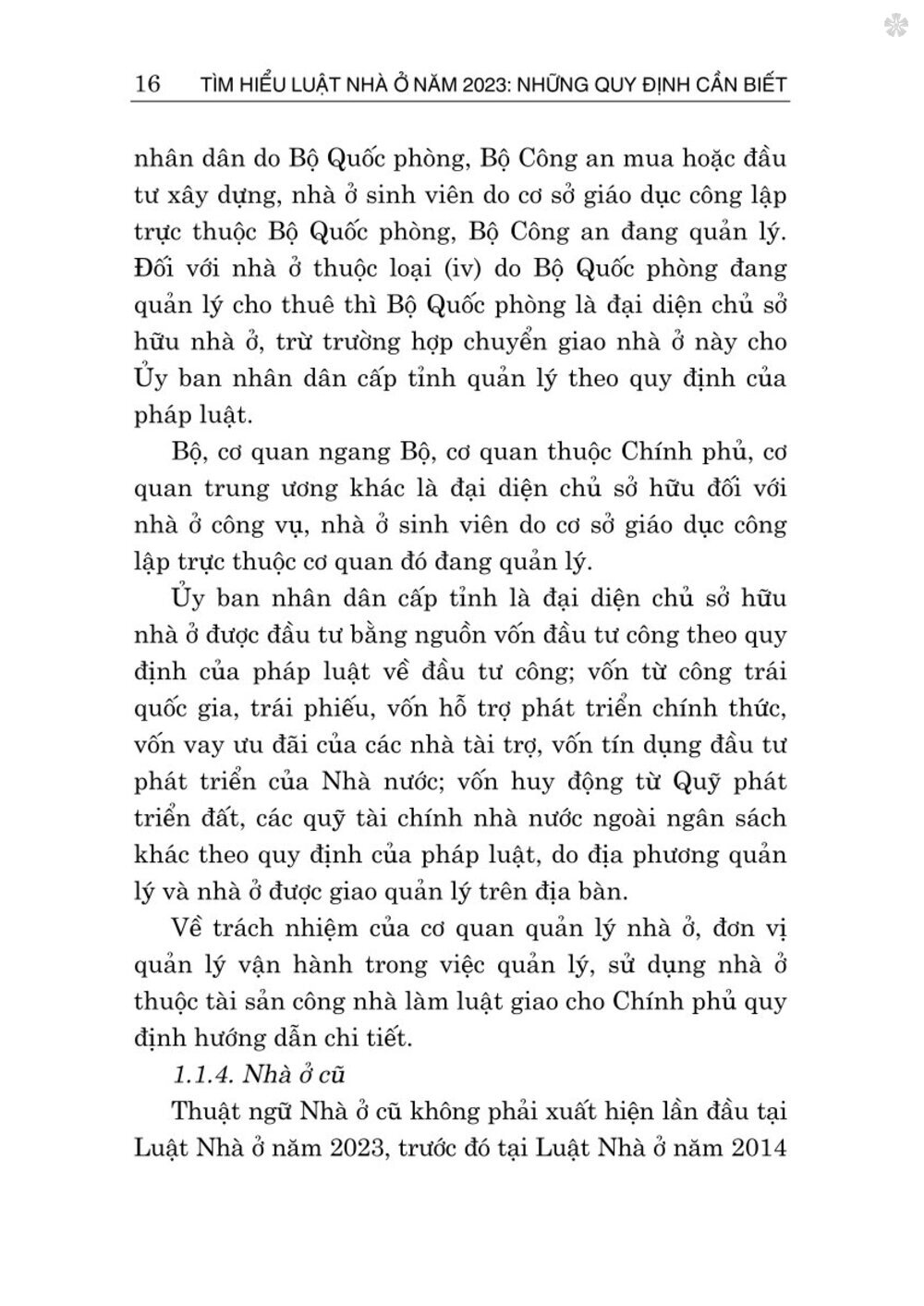 Mua tại TiktokNhằm kịp thời phục vụ nhu cầu của bạn đọc, Nhà xuất bản Chính trị quốc gia Sự thật xuất bản cuốn sách Tìm hiểu Luật Nhà ở năm 2023: Những quy định cần biết do Luật sư Trương Ngọc Liêu biên soạn. Cuốn sách gồm 07 chương: Chương I: Những nội dung cơ bản. Chương II: Quyền sở hữu nhà ở tại Việt Nam của tổ chức, cá nhân nước ngoài. Chương III: Phát triển nhà ở. Chương IV: Chính sách về nhà ở xã hội. Chương V: Cải tạo, xây dựng lại nhà chung cư. Chương VI: Quản lý, sử dụng nhà chung cư. Chương VII: Giao dịch về nhà ở. Xin trân trọng giới thiệu cuốn sách và mong nhận được ý kiến góp ý của bạn đọc.