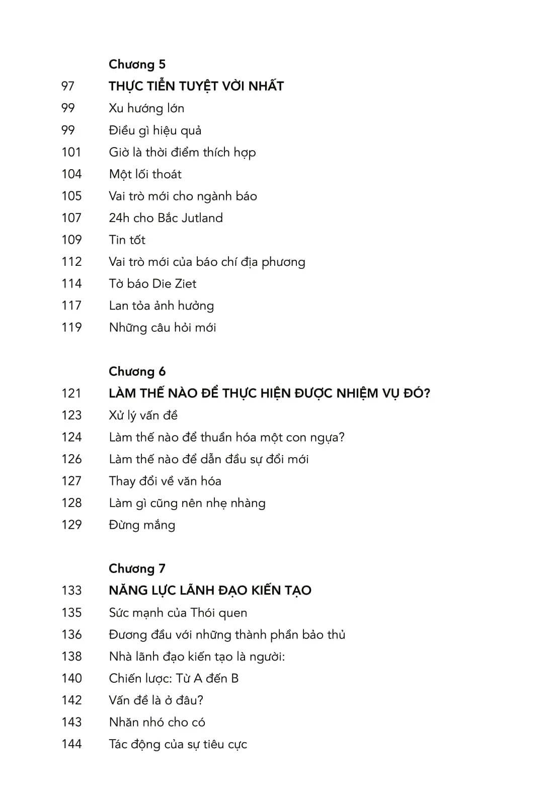 - Đề xuất giải pháp xây dựng một nền báo chí đa chiều, có khả năng truyền cảm hứng tích cực và mang lại nhiều lợi ích toàn cầu hơn. Tác giả đề xuất giải pháp cải thiện tình hình theo hướng tích cực bằng cách thiết lập lại một nền truyền thông trung thực, đa chiều, được xây dựng trên căn bản là "tin tức xây dựng" (constructive news). Cơ chế hoạt động của truyền thông - tin tức toàn cầu đương thời - với nền dân chủ truyền thông phương Tây như một kiểu bài học được mô tả, phân tích bằng những quan sát nghề nghiệp thấu đáo và hàng loạt những dẫn chứng thực tế sinh động. Cuốn sách có ích cho một CÁCH LÀM TRUYỀN THÔNG MỚI, khi truyền thông dễ dàng tràn ngập "tin xấu" (negative) và sự lên ngôi của chủ nghĩa dân tuý (populism) dần dà tạo nên mối hoài nghi ngày càng lớn trong dư luận. Tác giả Ulrik Haagerup nguyên là Giám đốc điều hành của Đài phát thanh – truyền hình Quốc gia Đan Mạch; Fouder và CEO của Viện nghiên cứu Tin tức xây dựng (Constructive Institute) mục tiêu cải thiện văn hóa tin tức toàn cầu.