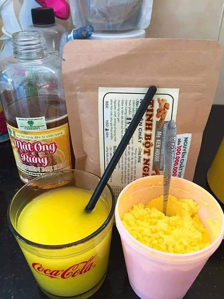 - Đặc biệt đối với những người bị tổn thương da do mụn bọc, có thể uống tinh bột nghệ với mật ong, hoặc đắp mặt nạ vào các buổi tối, hiệu quả có thể nhận thấy rõ rệt.
