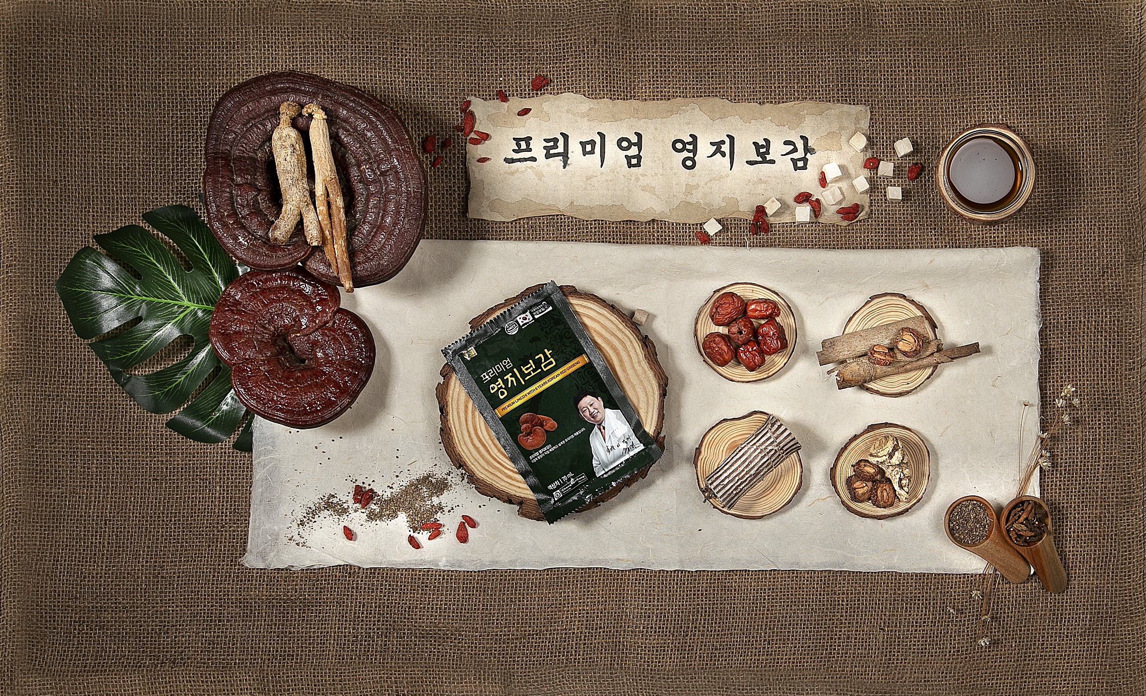 Chiết Xuất Linh Chi Và Hồng Sâm Hàn Quốc 6 Năm Tuổi Premium Lingzhi With 6 Years Korean Red Ginseng Thành phần chính: - Chiết xuất hỗn hợp thực vật 15% (táo tàu, rễ đương quy