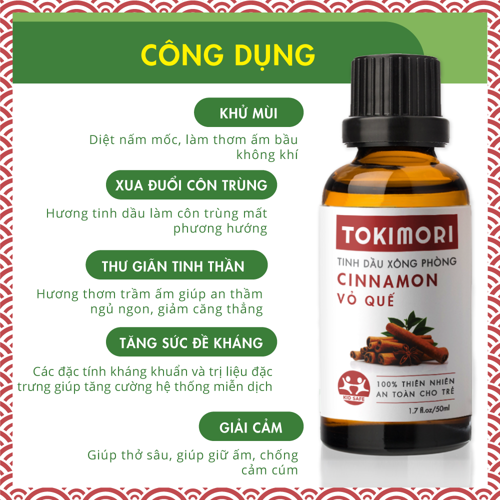 ✨Tinh Dầu Vỏ Quế TOKI MORI Xuất Khẩu Nhật Bản (50ml) Nguyên Chất Thiên Nhiên, Xông Phòng, Khử Mùi, Kháng Khuẩn, Đuổi Muỗi, Ngủ Ngon, Giảm Stress, An Toàn Cho Trẻ.