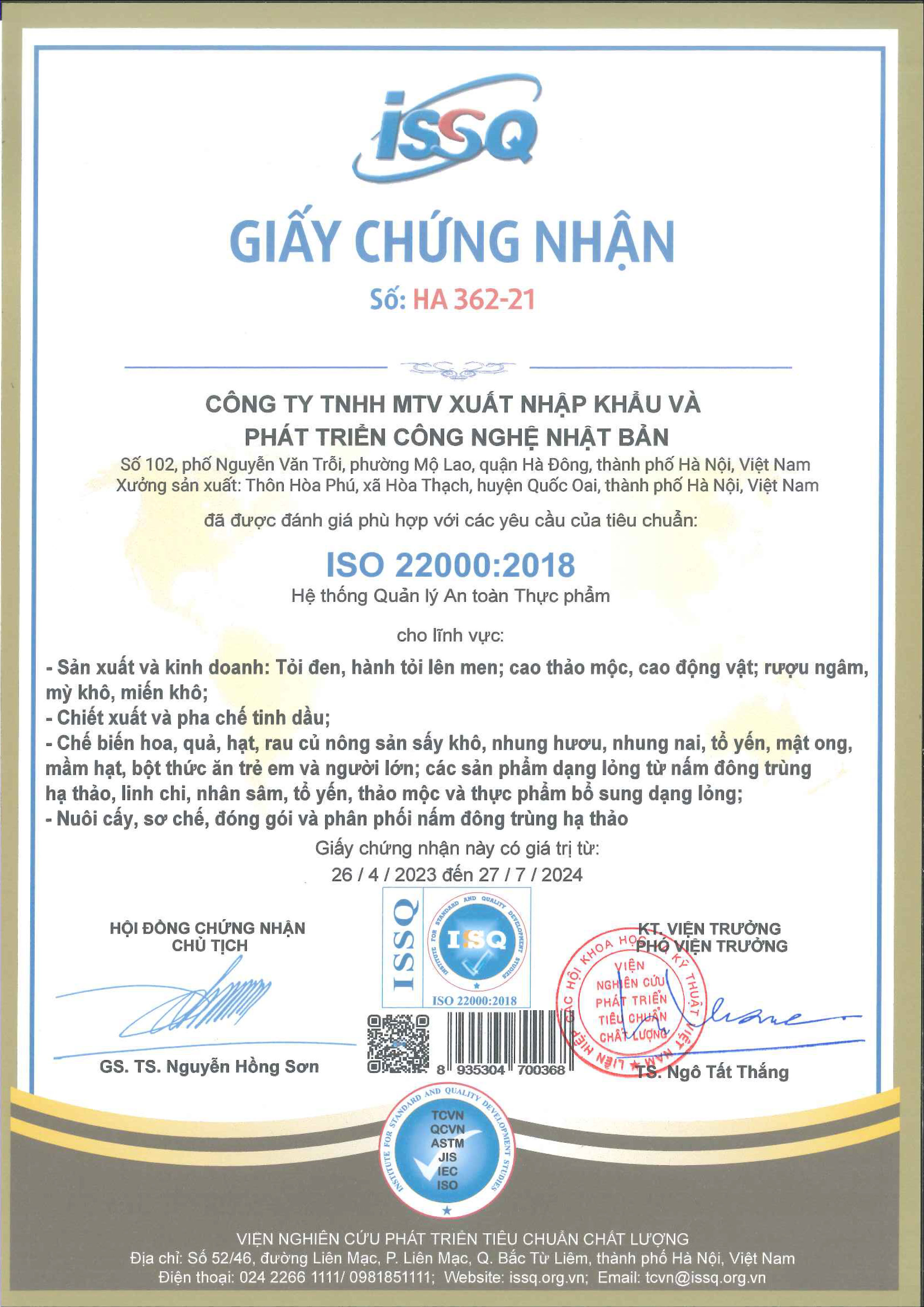 • Hạn sử dụng: 36 tháng kể từ ngày sản xuất.   Sản xuất và chịu trách nhiệm về sản phẩm: CÔNG TY TNHH MTV XUẤT NHẬP KHẨU VÀ PHÁT TRIỂN CÔNG NGHỆ NHẬT BẢN