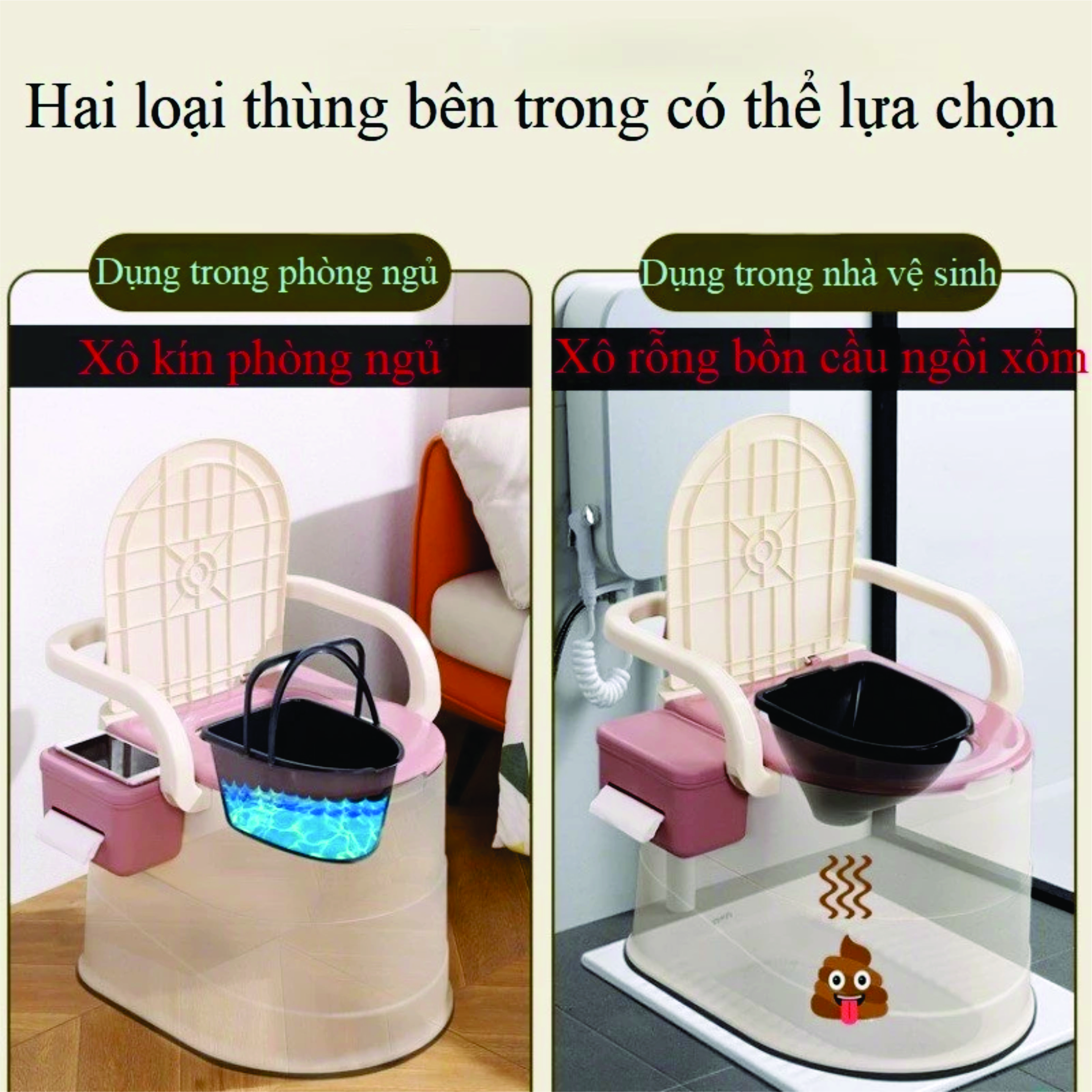✨Tolet, Bồn cầu di động cao cấp có tay vịn, tựa lưng đệm, có hộp giấy, siêu chịu lực dành cho trẻ em, người già, phụ nữ sanh BH 1 năm HÀNG CHÍNH HÃNG ( màu ngẫu nhiên)