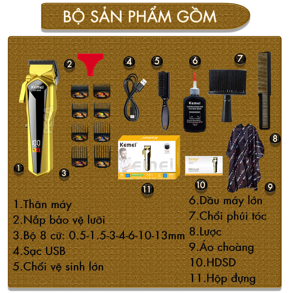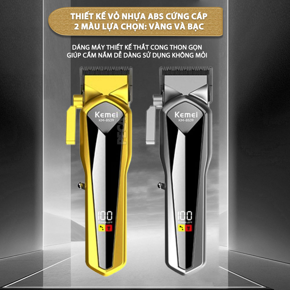 TÔNG ĐƠ CẮT TÓC CHUYÊN NGHIỆP KEMEI KM-8539 CÔNG SUẤT MẠNH 5W, MÀN HÌNH LCD HIỂN THỊ, LƯỠI CẮT MẠ CARBON DLC CAO CẤP
