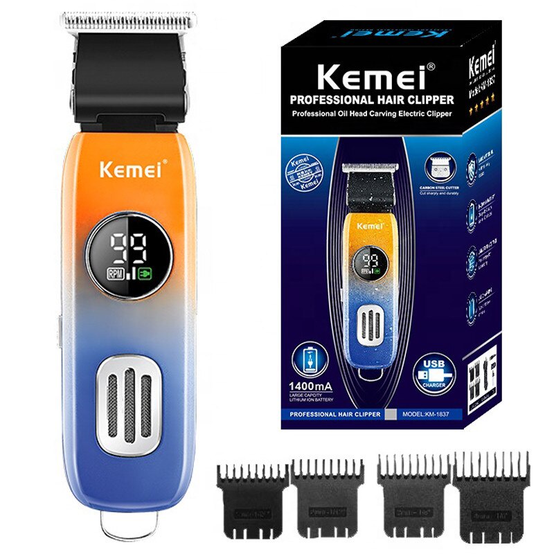 ✨Tông đơ cắt tóc không dây Kemei KM-1837 phiên bản mới cải tiến điều chỉnh 2 mức tốc độ màn hình LCD thông minh sạc nhanh USB công suất mạnh