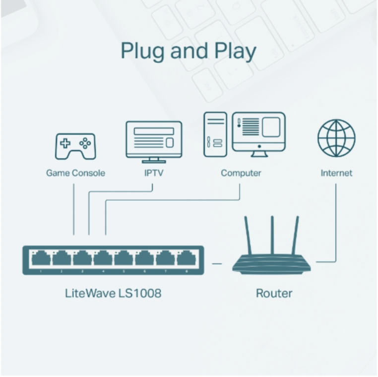 Chức năng sản phẩm Switch để bàn Gigabit 8 cổng TL-SG1008D của TP-LINK cung cấp cho bạn 1 giải pháp dễ dàng để chuyển đổi sang Ethernet Gigabit. Giúp tăng tốc độ máy chủ mạng
