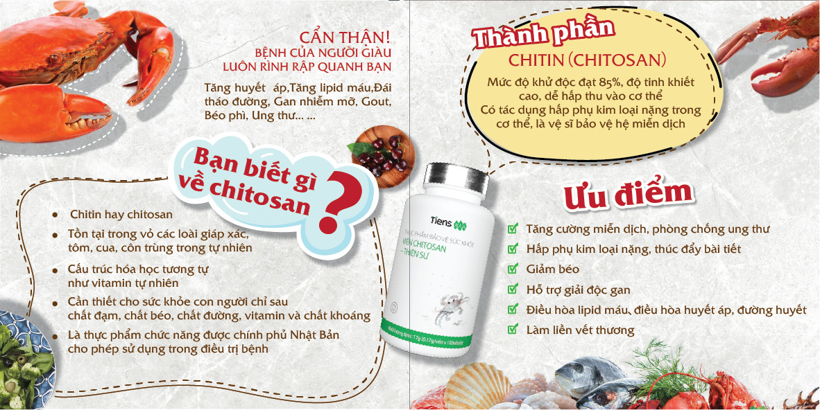 Thành phần: Bột chitosan (chiết xuất từ vỏ cua) 82%: 170mg