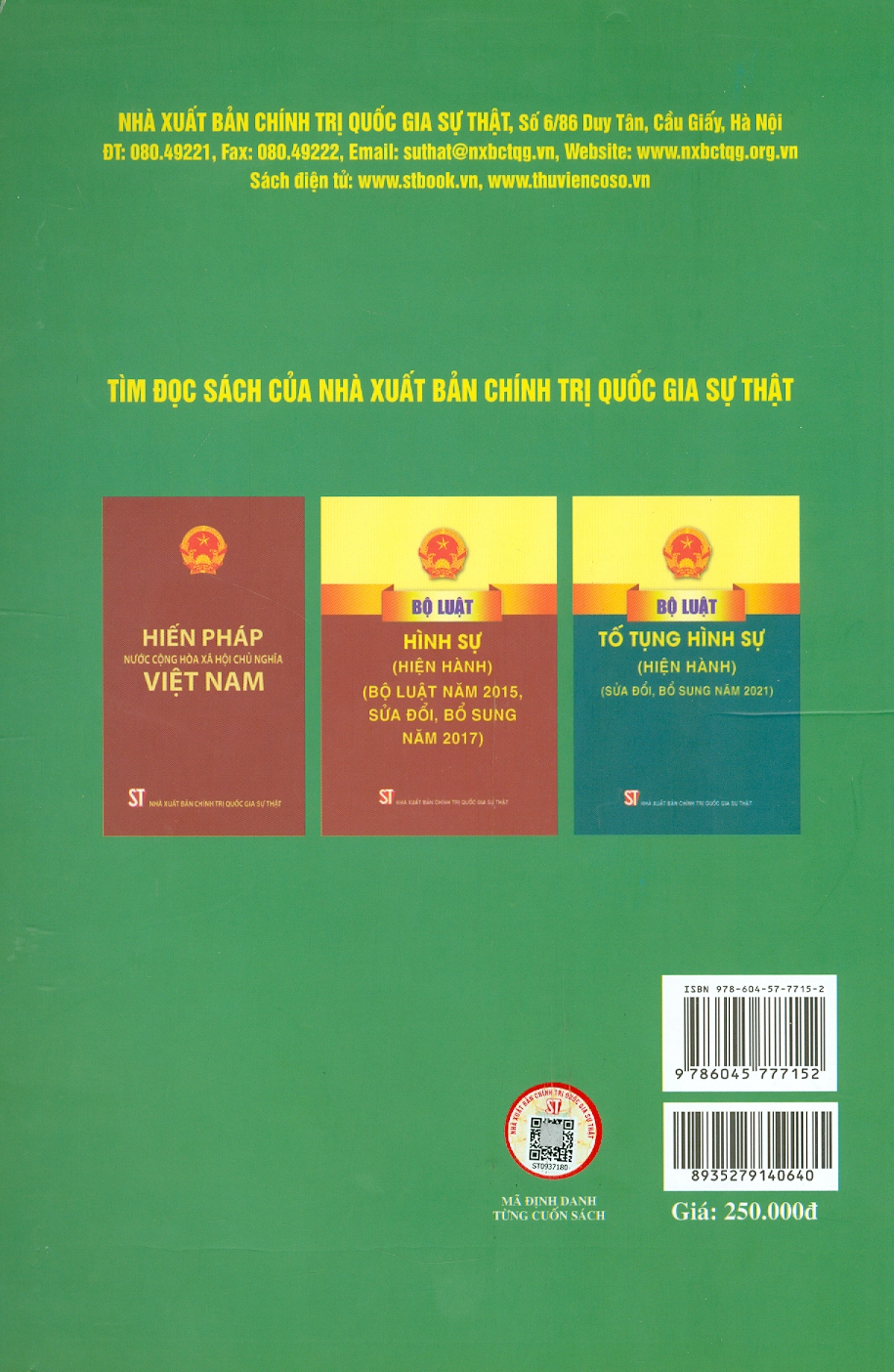 Nhằm đáp ứng nhu cầu tìm hiểu, nghiên cứu Bộ luật Hình sự của bạn đọc nói chung, của cán bộ làm công tác pháp luật, cán bộ nghiên cứu, giảng dạy pháp luật và
