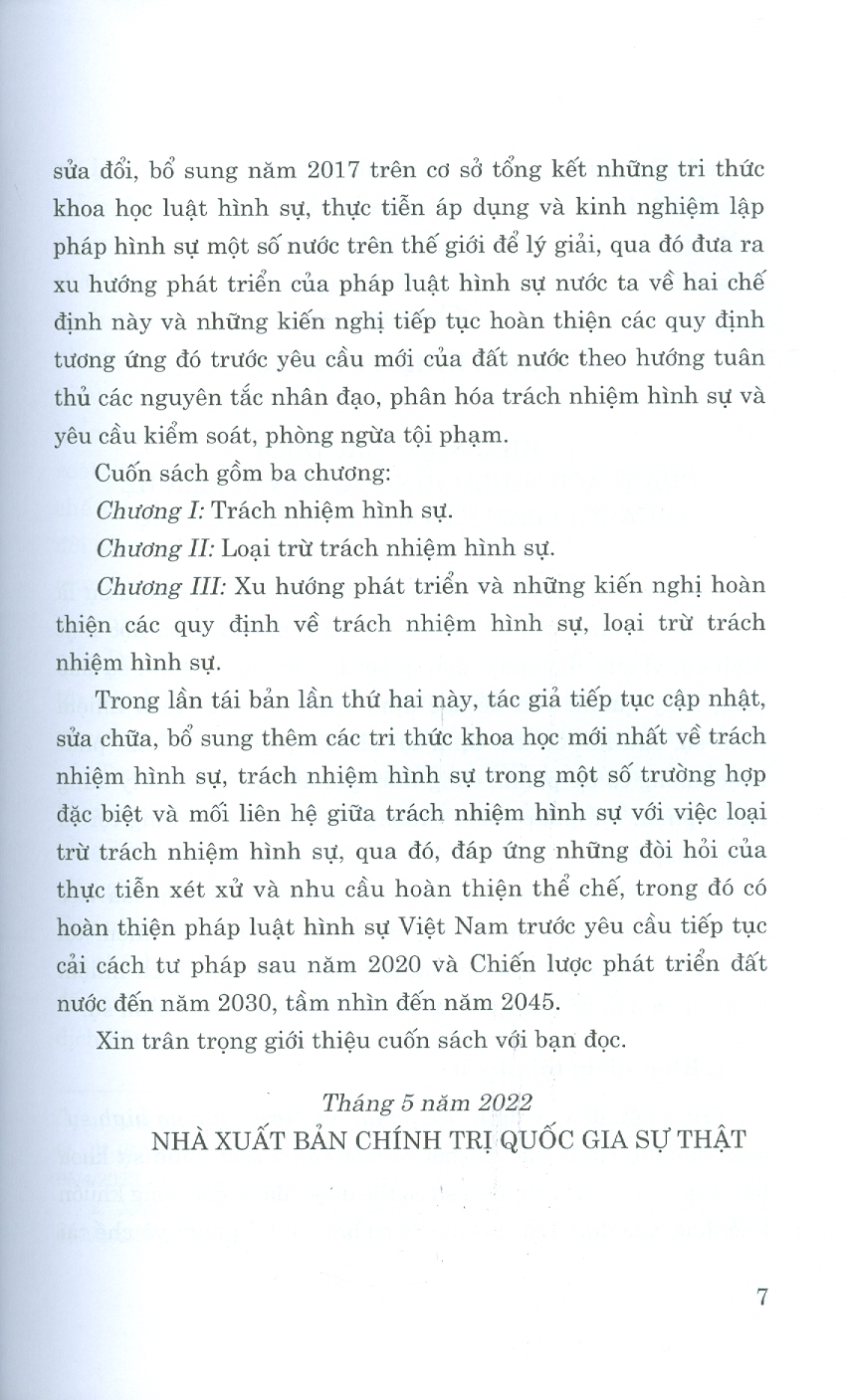 ✨TRÁCH NHIỆM HÌNH SỰ VÀ LOẠI TRỪ TRÁCH NHIỆM HÌNH SỰ (Sách chuyên khảo) (Tái bản lần thứ hai, có sửa chữa, bổ sung)
