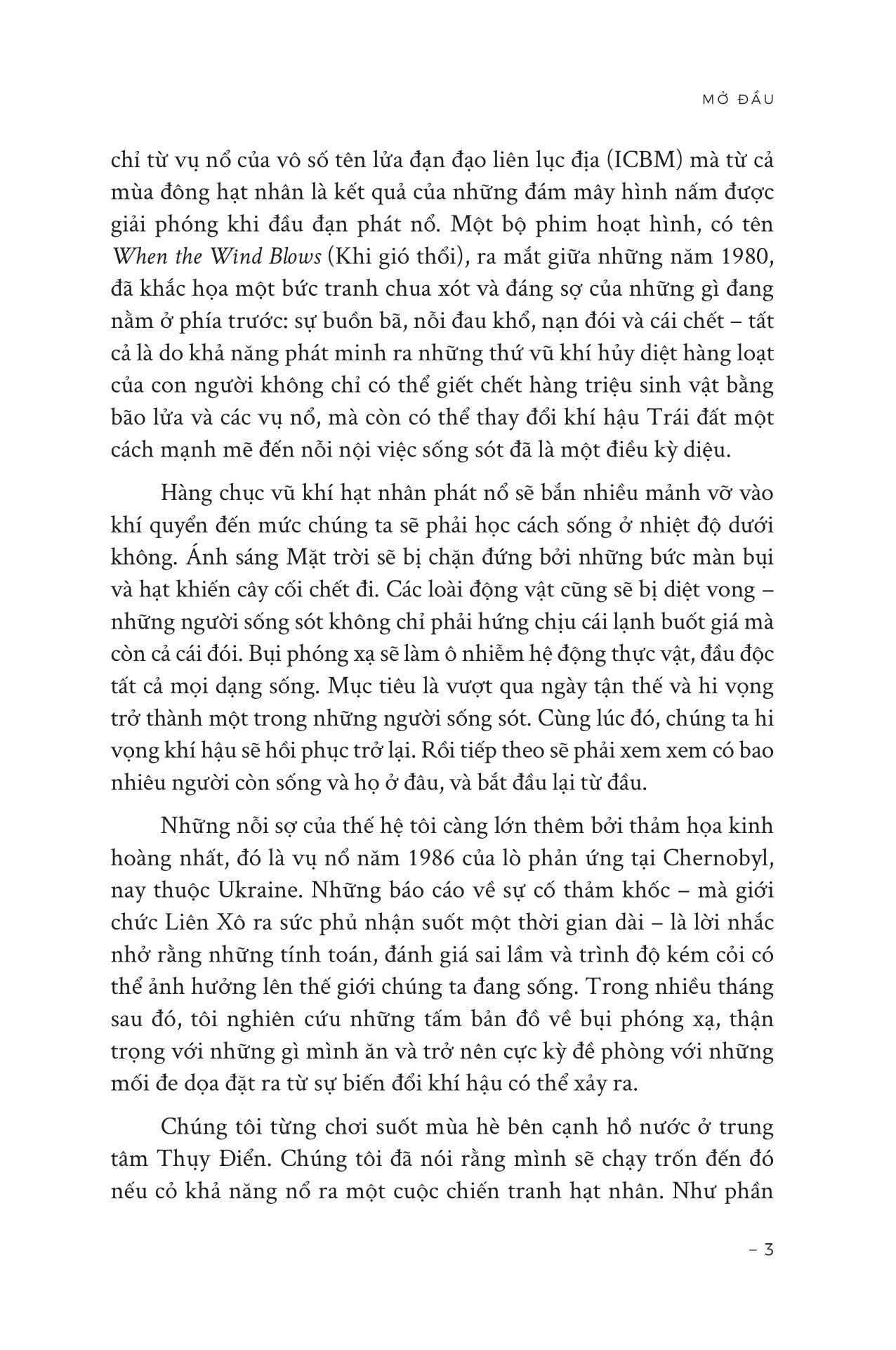 1. Cuốn sách này không nói về những gì sẽ diễn ra trong tương lai. Mục đích của nó không phải để thách thức những tiếng nói đồng thanh mang tính áp đảo của cộng đồng khoa học, cũng không tập trung vào các điều kiện toàn cầu hiện tại hay xem xét những bước đi nào có thể giảm thiểu một số hoặc thậm chí là nhiều vấn đề tồi tệ nhất do biến đổi khí hậu đặt ra, dẫu là qua sự thích nghi hay giới thiệu những công nghệ mới. Thay vào đó, mục đích của nó là xem xét quá khứ, hiểu và giải thích chúng ta đã ở vào vị thế mà nay có vẻ thật hiểm nghèo như thế nào.