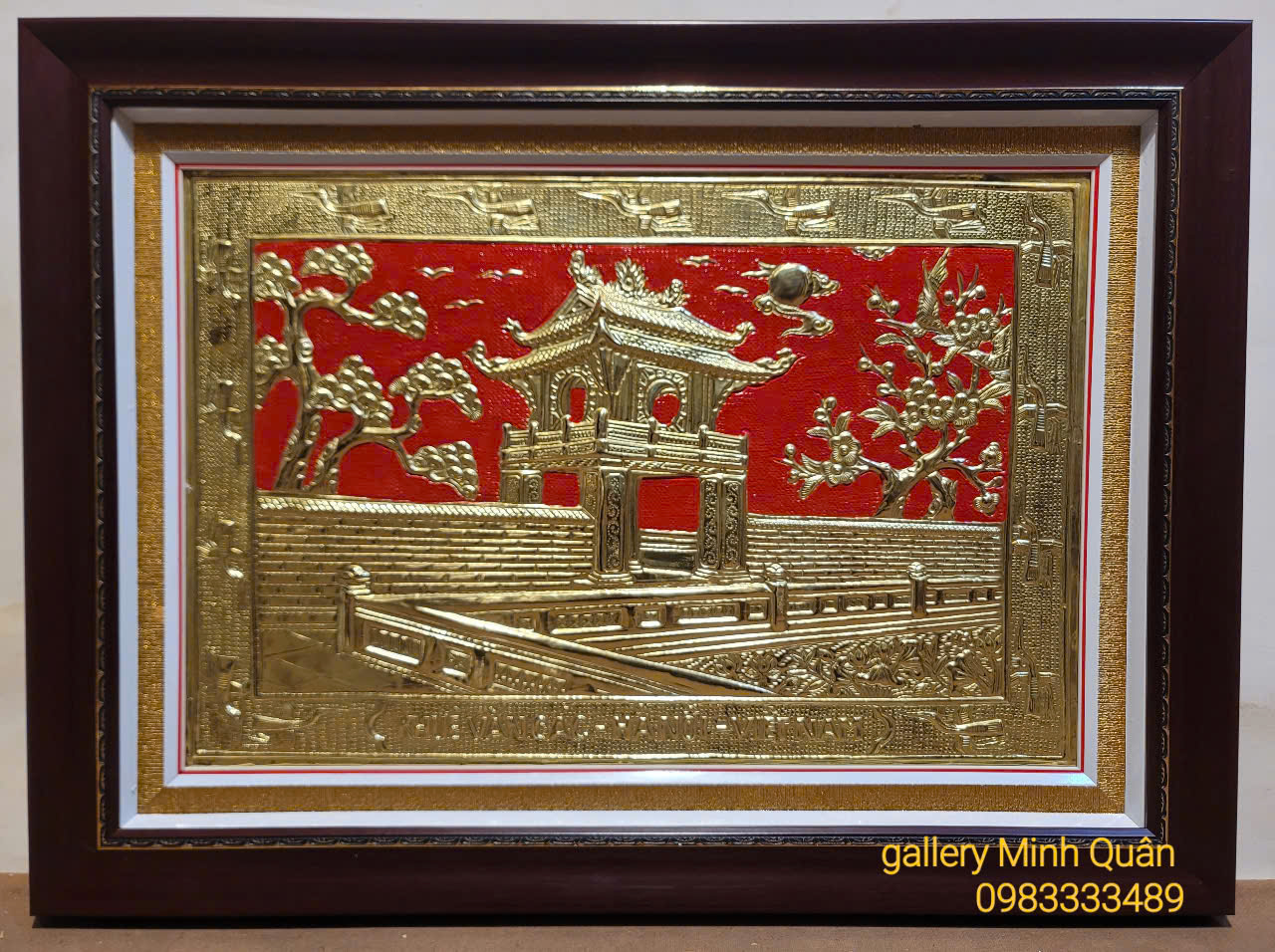 Tranh đồng Văn Miếu – Quốc Tử giám – Khuê văn các – Hà NộiChất liệu đồng vàng nguyên chất liền tấm được chế tác chạm khảm gò hoàn toàn thủ công rất tinh xảo.Khung tranh màu nâu vân gỗ composite chống...