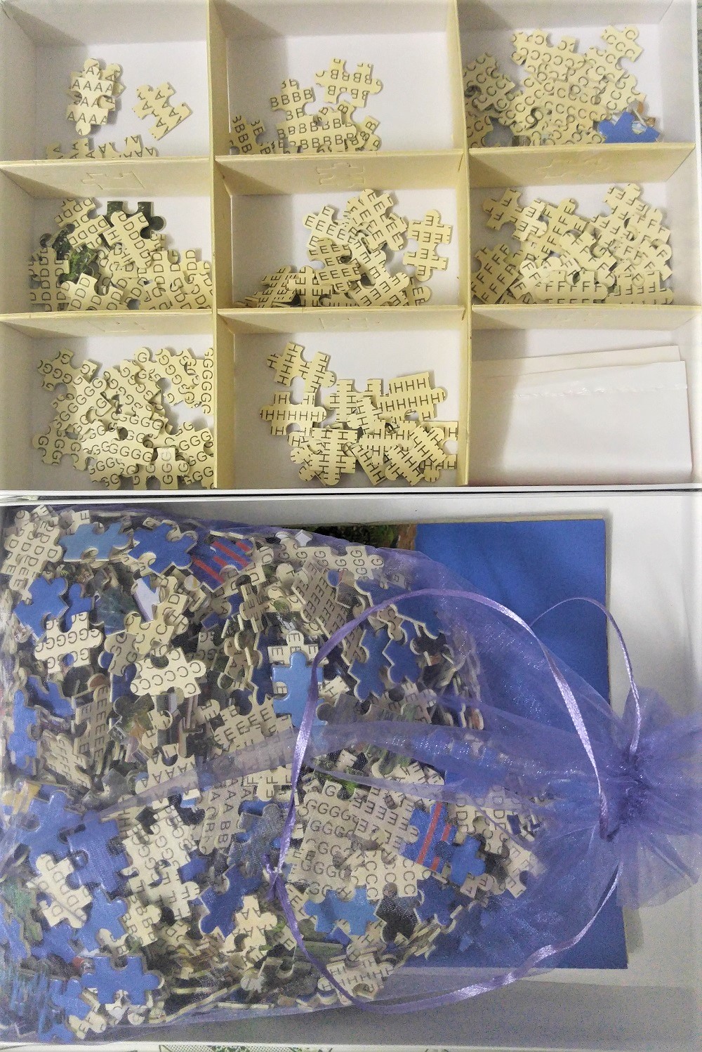 - Phân loại các vùng theo ký tự ABCD ( từ 6-8 vùng) theo từng ô để tránh lẫn lộn tranh xếp hình 1000 mảnh