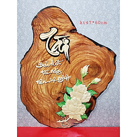 Tranh gỗ Cha Mẹ Phúc Đức sơn PU cao 107, cao 37, ván dày 3 cm | Nội thất gỗ Vạn Đạt