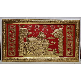 Mua tại TiktokTranh liễn thờ tổ tiên. CỬU -HUYỀN – THẤT- TỔ (thờ 9 đời nội ngoại) Sản phẩm được chế tác thủ công rất tinh xảo từ đồng vàng nguyên chất, liền tấm tranh và khung bằng đồng . Kích thước phủ khung 76*139cm