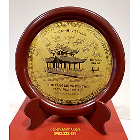 Mua tại TiktokSản phẩm tranh đĩa LĂNG MỘ CÁC VUA TRIỀU LÝ,ĐÌNH BẢNG, TX TỪ SƠN, BẮC NINH có chân để bàn phù hợp cho món quà tặng lưu niệm bền đẹp đầy ý nghĩa. Chất liệu được làm từ đồng vàng nguyên chất, chân, viền khung bằng gỗ, bao bì hộp giấy lụa mà đỏ sang trọng.
