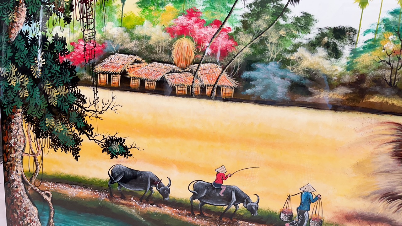 Tất cả tranh sơn mài được sử dụng màu vẽ, sơn PU với chất lượng tốt giúp tranh luôn giữ được màu vẽ, độ bóng bền vững theo thời gian. Đồng quê Việt Nam luôn là nguồn cảm hứng bất tận của những người nghệ sĩ yêu quê hương. Những cánh đồng lúa bạt ngàn, những con người lao động chân chất nhưng cần cù chịu thương chịu khó là những nét đẹp của đất nước trong mắt nhân dân và bạn bè quốc tế.