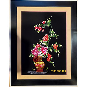 Mua tại TiktokTranh thêu tay – Bình Hoa Hồng – T073 Chất liêu tranh thêu tay bằng chỉ tơ sắc nét tinh xảo bóng đẹp. Khung tranh màu vân gỗ composite nhẹ, chống mối mọt, bền đẹp. Mặt tranh lồng kính hoặc meca Kích thước 72*92cm