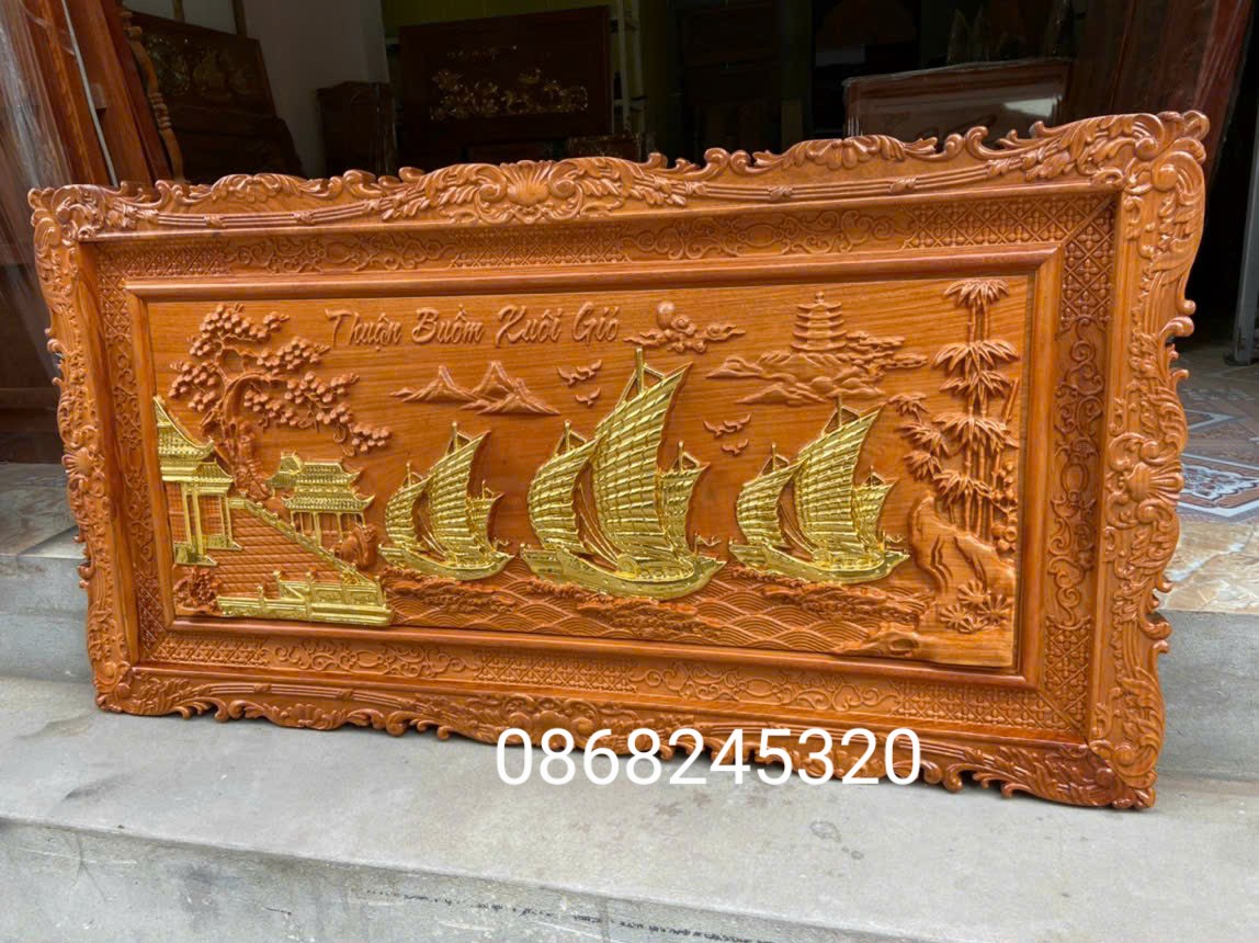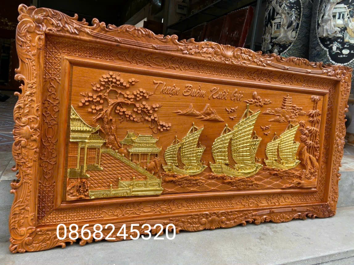 ✨Tranh thuận buồm xuôi gió bằng gỗ gõ pu dát vàng cao cấp kt 67×127×4cm