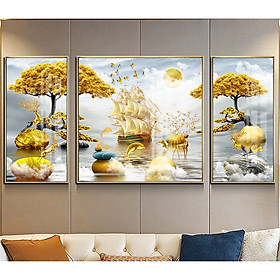 Tranh treo tường trang trí hươu nghệ thuật - Kích thước của tranh : Size 1 :50x70cmx 1 tấm +30x50x2 tấm Size 2 :60x80cm x 1 tấm +40x60x2 tấm - Chất liệu : Tráng gương