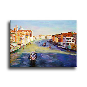 Tranh Treo Tường Canvas Suemall CV140829 là một trong những tác phẩm tiêu biểu của dòng tranh nghệ thuật Canvas Suemall. Tranh được làm từ chất liệu vải Canvas - là loại vải cao cấp chuyên dùng trong lĩnh vực hội họa, bề mặt giống vải và có dạng lưới. Vải Canvas sẽ được căng trên khung gỗ, nhờ cấu tạo đơn giản, tranh Canvas có trọng lượng khá nhẹ, dễ trưng bày. Bên cạnh đó, tranh được thực hiện với độ phân giải cao và tỉ mỉ trong từng chi tiết nên được rất nhiều người ưa chuộng hiện nay. Tranh khắc họa hình ảnh dòng sông nằm giữa một thành phố đầy thơ mộng và khung cảnh tráng lệ hai bên bờ sông sẽ tô điểm thêm cho ngôi nhà của bạn.