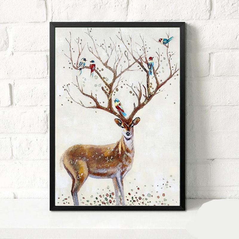 ✨Tranh treo tường Canvas trang trí hươu 2 50x70cm ( kèm theo khung )
