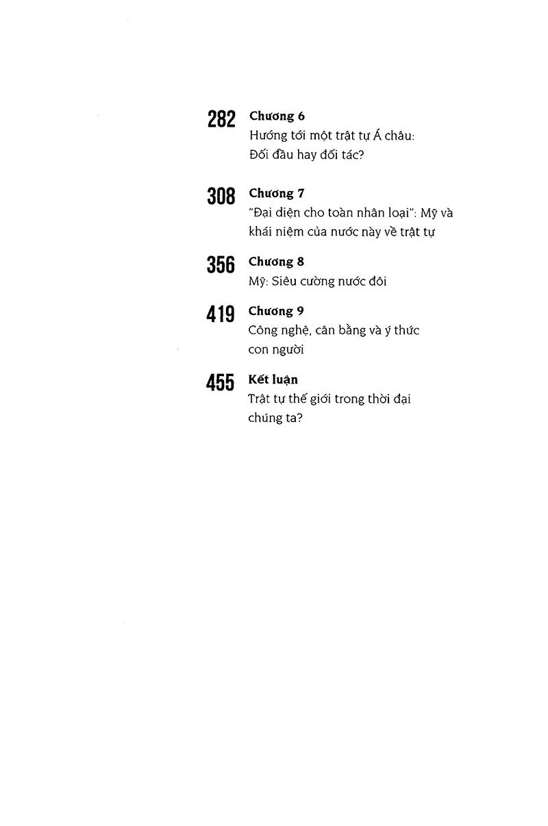 Mua tại TiktokTrật Tự Thế Giới (Tái Bản 2023) Trong tác phẩm, Kissinger xuất phát từ Hòa ước Westphalia để phân tích về tương quan giữa các nước, chủ yếu là các cường quốc và các khu vực giữ một vai trò đặc biệt đối với bức tranh địa chính trị thế giới, với những khác biệt trong thế giới quan và vị trí địa lý đã ảnh hưởng đến chính sách ngoại giao của mỗi nước như thế nào. Tác giả dành chương cuối (chương 9) để bàn về vấn đề toàn cầu hoá trong thời đại khoa học công nghệ, đặc biệt là tin học và truyền thông đại chúng lan tràn đã tác động mạnh mẽ đến dư luận, các nhà lãnh đạo và các quyết định chính trị hiện nay. Theo cách nhìn của Kissinger thì trật tự thế giới ngày nay cần được đặt trên hai yếu tố căn bản: