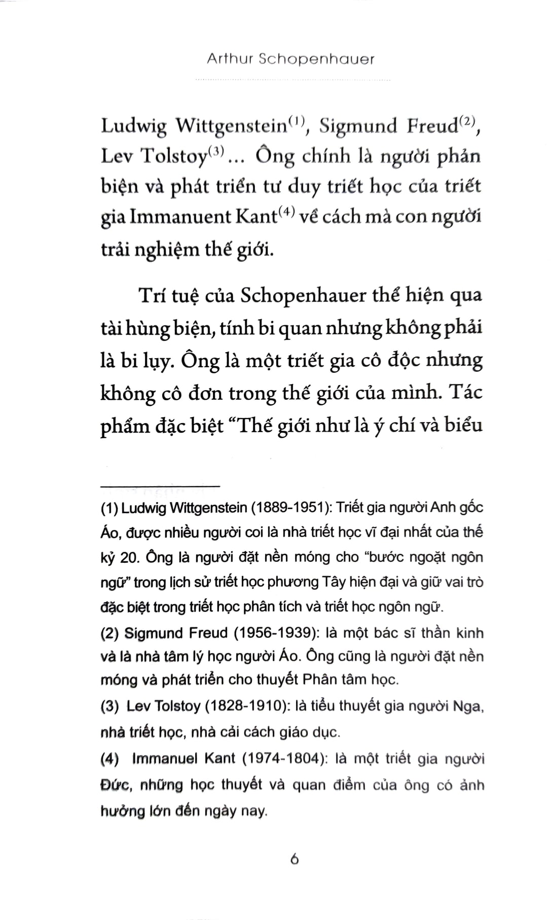 Trí Tuệ Nhân Sinh GIỚI THIỆU TÁC GIẢ: Arthur Schopenhauer, một trong những triết gia vĩ đại của nước Đức, nổi tiếng với những quan điểm đầy sáng tạo và phản biện sâu sắc về cuộc sống và nhân sinh. Ông được biết đến với việc khuyến khích một lối sống đơn giản, khổ hạnh và chay tịnh, mặc dù trong cuộc sống cá nhân ông lại thích ăn thịt, uống rượu vang và mê mẩn phụ nữ. Schopenhauer đã mở rộng và phát triển triết lý Kant về cách con người trải nghiệm thế giới, đặc biệt là trong việc khám phá sâu sắc về bản chất của khổ đau và sự vô ích trong cuộc sống. Triết gia này không chỉ nổi tiếng với sự độc lập tư tưởng mà còn với sự dám nghĩ, dám nói và sự sâu sắc về tâm lý con người, tạo nên dấu ấn sâu sắc trong lịch sử triết học thế giới. GIỚI THIỆU TÁC PHẨM: TRÍ TUỆ NHÂN SINH – CUỘC DẠO CHƠI CỦA MỘT “ĐỘC CÔ” GIỮA CUỘC ĐỜI. Trí Tuệ Nhân Sinh của Arthur Schopenhauer là một tác phẩm triết học sâu sắc về hạnh phúc và ý nghĩa cuộc sống. Trong cuốn sách này, Schopenhauer đề cập nhiều điều thú vị mà bạn đọc có thể chiêm nghiệm và tự rút ra cho mình những bài học quý giá. Ông cho rằng, những gì một người có ở bản thân mình, cùng với mục tiêu cuộc sống của anh ta, là yếu tố trực tiếp dẫn đến hạnh phúc và phúc lợi của người đó. Tất cả những thứ khác chỉ là trung gian và gián tiếp và ít bị ảnh hưởng. Schopenhauer lập luận, con người có thể dễ dàng chịu đựng một điều bất hạnh đến từ bên ngoài dễ dàng hơn là điều bất hạnh từ bên trong. Vận mệnh có thể thay đổi, nhưng tính cách thì không. Vì vậy, những phước lành từ chủ quan, một bản chất cao thượng, một cái đầu có năng lực, một tính khí vui vẻ, tinh thần trong sáng, một thể chất khỏe mạnh, là những yếu tố đầu tiên và quan trọng nhất của hạnh phúc. “Đừng nên kỳ vọng nhiều vào người khác, hay nói chung là đừng nên kỳ vọng từ thế giới bên ngoài” – như một châm ngôn đúng với bất kỳ ai! Chính bản thân mình là nguồn gốc của những điều tốt đẹp nhất mà con người có thể đạt được. Càng đúng hơn khi khẳng định – một người càng vui vẻ hạnh phúc hơn khi tìm thấy nguồn vui trong chính mình.