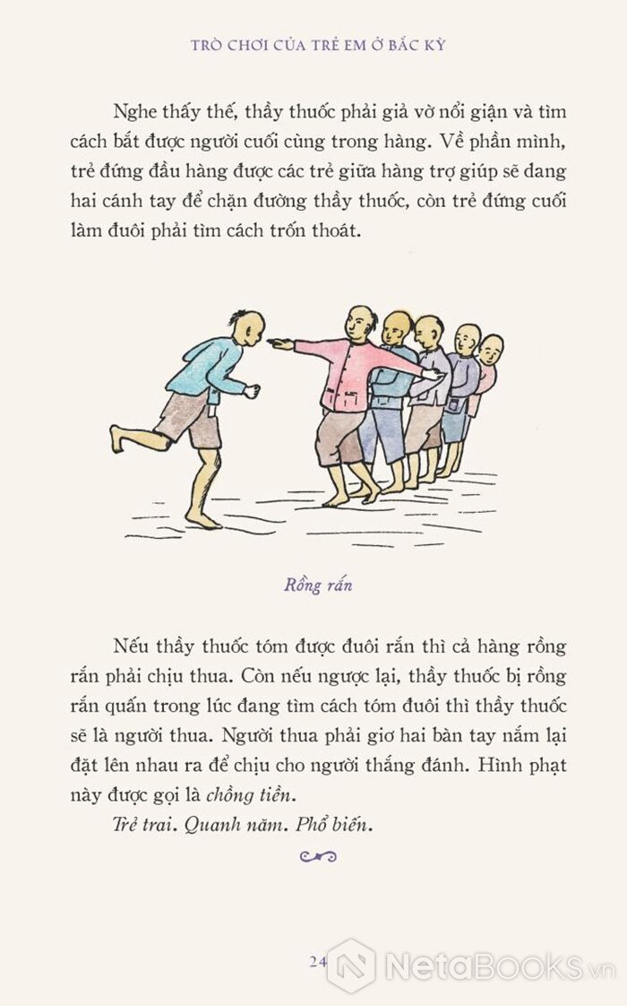 Tại thành phố, trong lúc trẻ em chơi bi, bóng nhỏ, bóng lớn, nhảy ô, nhảy cừu cùng một loạt các trò giải trí khác đến từ nước ngoài, thì tại vùng quê, các bé trai và các bé gái lại có những thú vui mang bản chất khác hẳn. Chính nhờ các trò chơi thôn dã này mà ta hiểu rõ hơn tính chất các hoạt động của thiếu niên An Nam và các trò chơi ấy chính là đối tượng của tuyển tập này.”