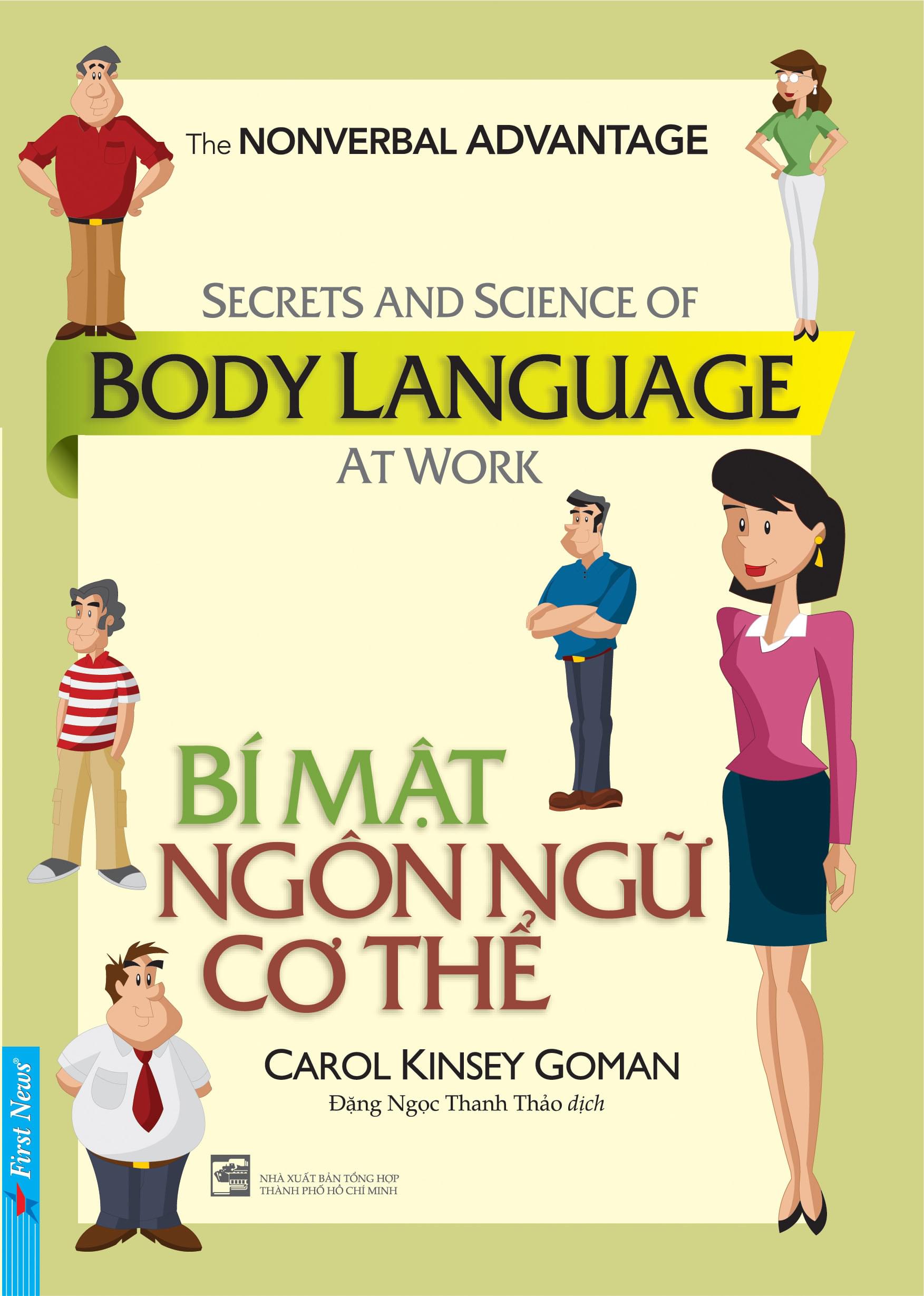 - Bí Mật Ngôn Ngữ Cơ Thể - Carol Kinsey Goman Dành cho những ai có thị lực tốt nhưng không nhìn thấy bản chất sự việc bằng đôi mắt của mình Cuốn sách Bí Mật Ngôn Ngữ Cơ Thể của tác giả Carol Kinsey Goman thực sự là một cuốn sách hay giúp bạn phân tích và giải thích cho bạn từng dấu hiệu và điệu bộ của các bộ phận trên cơ thể như mắt, miệng, cánh tay, chân… kết hợp các dấu hiệu với nhau và kết hợp với cả những người mà họ đang giao tiếp. Cho dù người ta có thể bị một tật nào đó trên cơ thể, nhưng bạn vẫn có thể phán đoán dựa trên những bộ phận khác. Trong cuốn sách Bí Mật Ngôn Ngữ Cơ Thể này, tác giả còn trình bày nguyên tắc tâm lý kì diệu của mình – nguyên tắc giao việc hiệu quả vào việc dạy dỗ con cái. Với 6 bước đơn giản và hữu ích, bạn sẽ giúp con trẻ dễ dàng gặt hái thành công và tự tin bước vào đời. Với kinh nghiệm 30 năm tư vấn hôn nhân, tác giả – chuyên gia tâm lý – Tiến sĩ Gary Chapman đã đúc kết được 5 ngôn ngữ tình yêu của người bạn đời chứ không phải của bản thân bạn. Tất nhiên, quyển Bí Mật Ngôn Ngữ Cơ Thể của tác giả Carol Kinsey Goman không nhằm mục đích biến độc giả thành thám tử tư với con mắt "cú vọ". Nhưng nếu ai thừa nhận rằng: "Đôi lúc, dáng vẻ khi bạn đang nói quan trọng hơn điều bạn muốn nói ra", thì cuốn sách sẽ mang lại những kiến thức tham khảo thú vị về tâm lý học và văn hóa giao tiếp.