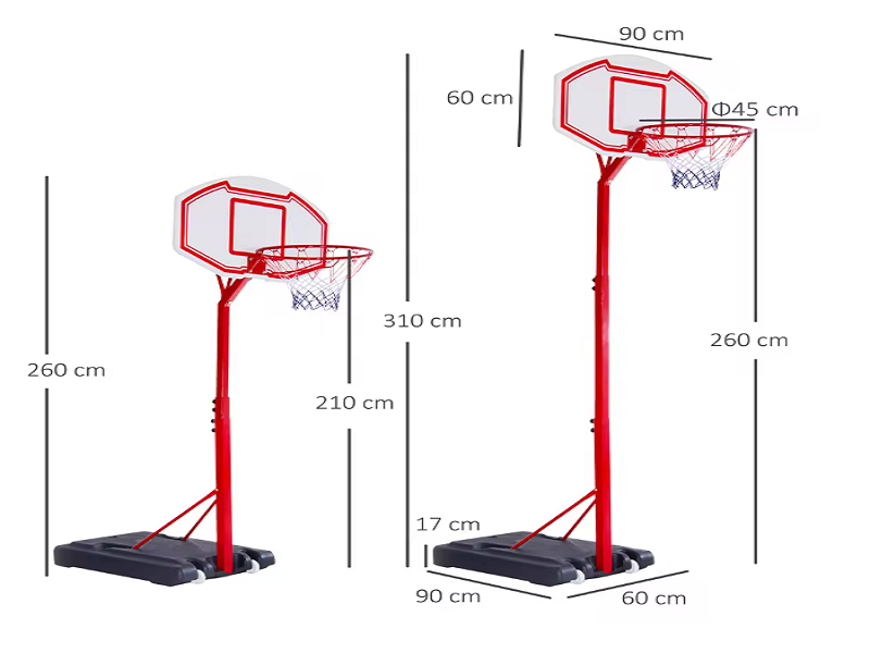 Điều chỉnh độ cao linh hoạt: Trụ bóng rổ có thể điều chỉnh từ 2100 đến 2600 mm. Phù hợp với nhiều đối tượng sử dụng, từ trẻ em đến người trưởng thành.