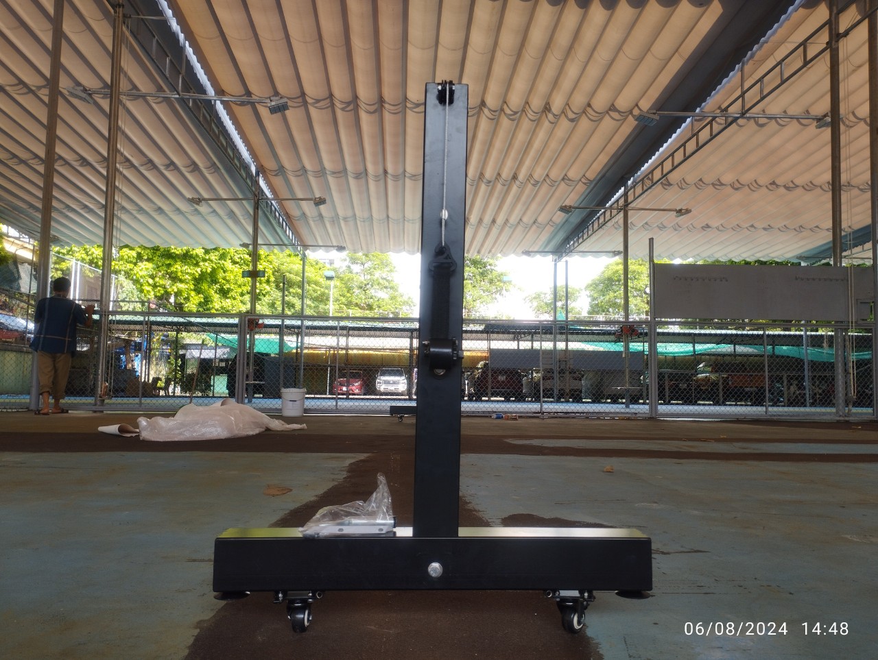 Thông tin chi tiết Trụ pickleball thi đấu di động 303704-P Mã sản phẩm: 303704-P. Xuất xứ: Việt Nam. Kích thước: D – R – C: 6860 – 750 – 914mm. Căng lưới bằng tay quay tăng đơ. Lắp ghép bằng bulong. Thả tự do xuống nền khi sử dụng. Di chuyển bằng bánh xe. Khối lượng: 35kg. Khung chính: Thép hộp vuông 80×80, 40×40 (mm). Sơn tĩnh điện.