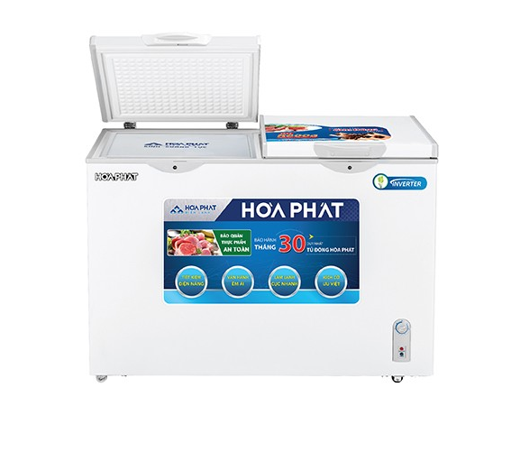 Tủ đông 2 ngăn 2 cánh Dung tích 245L Dàn đồng, On/Off Kích thước tổng (RxCxS): 1235x915x610 mm 2 chế độ đông và mát Môi chất lạnh R600a Tủ đông Hòa Phát HPF BN6245 sở